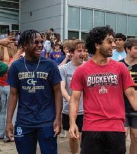 A beloved Country Day tradition continued today as the Class of 2025 walked the Clap-Out route, concluding in the Carey Family Amphitheater. Just as the rain cleared, parents, students, faculty, and staff from every division lined the sidewalks to cheer on our seniors, who wore their college spirit wear with pride. The walk ended with one last group photo and plenty of meaningful moments with friends and family. There were hugs, happy tears, and lots of smiles as the entire Country Day community wished them well on their next great adventure.