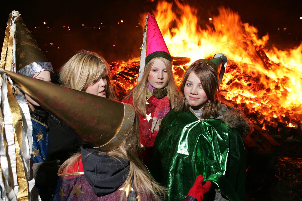 mad, seals shed their skins and walked as men, and elves moved to a new house. People made sure to keep every corner of their house well-lit on Twelfth Night in case the elves would stop by on their way. Today, the tradition lives on in Twelfth Night bonfires where the “elf king and queen” will often make an appearance. Families flock to the bonfires and sing New Year’s songs, often containing lots of references to elves.