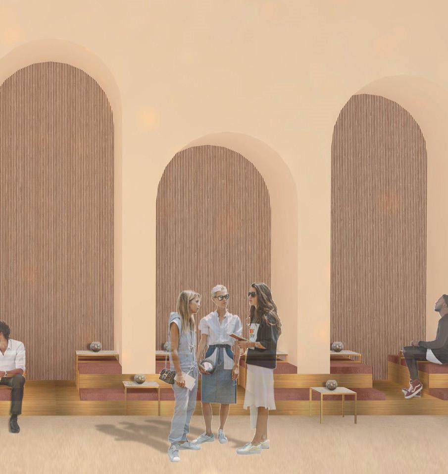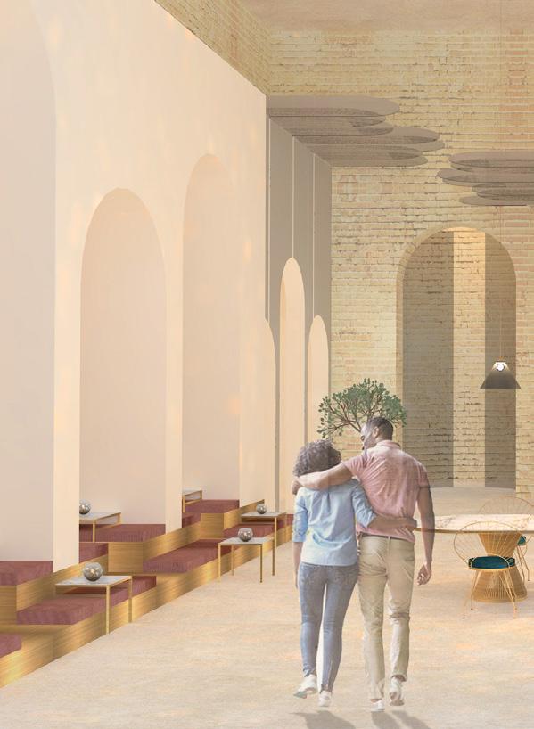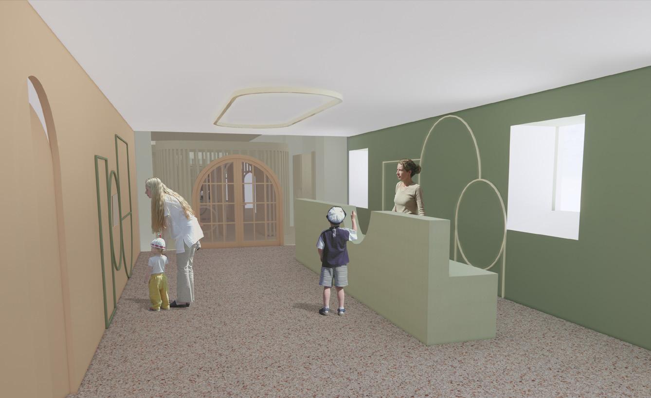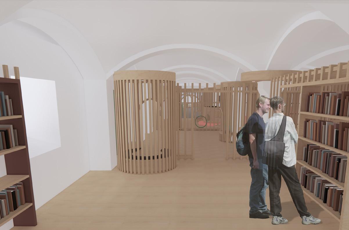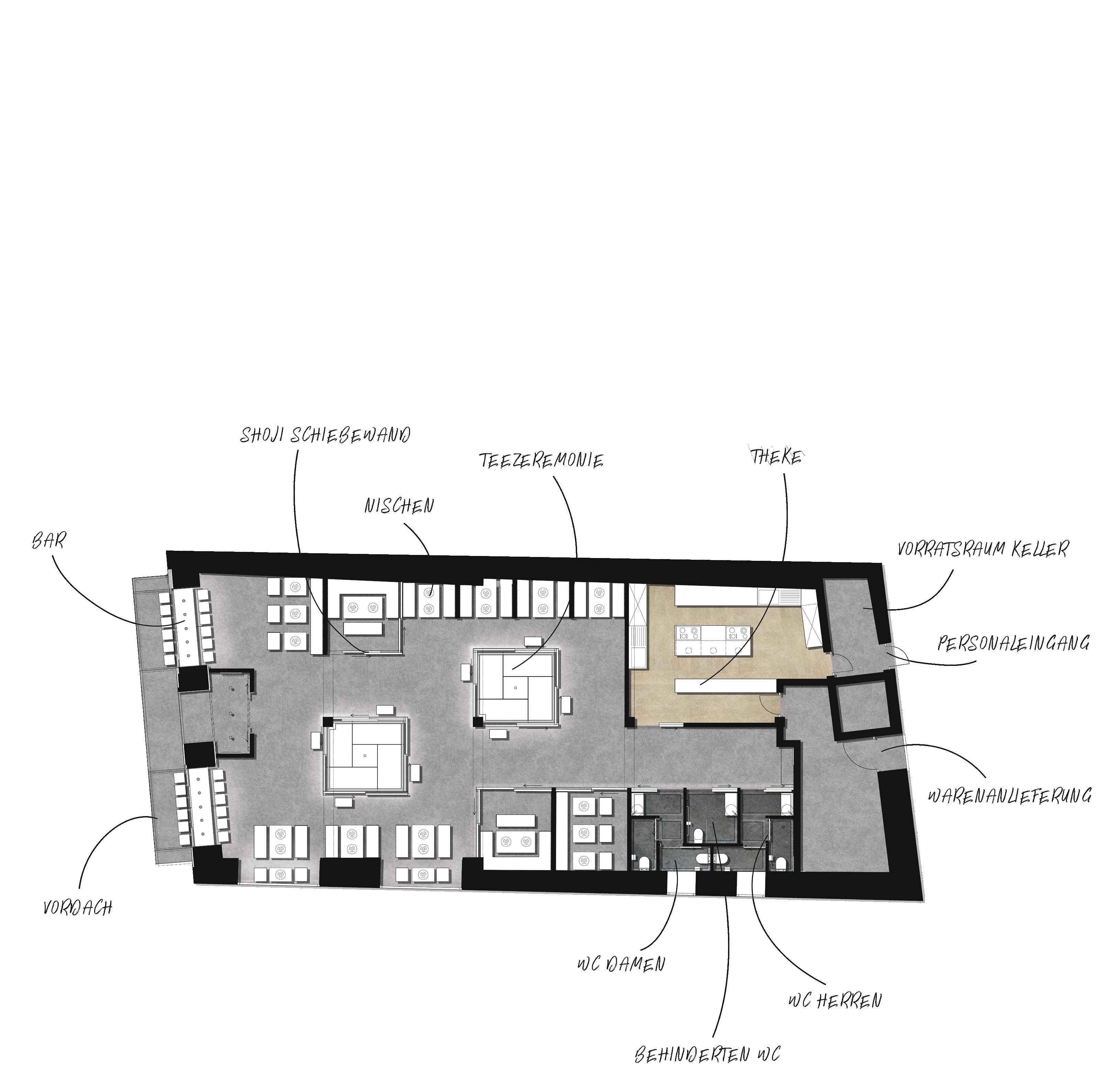 Das von Lena-Marie Schuh und mir entworfene Gästehaus ist eine 200m² große, symetrisch aufgebaute Wohnung. Im Nor den befinden sich die Schlafzimmer, beide jeweils mit einem begehbarem Schrank und privatem Bad. Zusätzlich befindet sich im Flur ein Gäste WC und ein kleiner offener Raum. Diese Bereiche haben eine Raumhöhe von 2,50m. Der südliche Teil des Wonraums hat eine Deckenhöhe von 5,40m. Hier befinden sich Wohnzimmer, Küche und Terasse mit einem Swimming-Pool. Circa ein Viertel des Pools schnei det in die Wohnfläche ein, wodurch eine Überdachung des Schwimmbereichs ermöglicht wird. Im Innenbereich kann diese Einragung als Galerie benutzt werden. Eine weitere Be sonderheit ist das große Fenster zwischen dem Wohn- und Essbereich wodruch viel Tageslicht in die Wohnung gelangt und zusätzlich ein toller Ausblick in die Natur ermöglicht wird. Durch die unterschiedlichen Dachhöhen des Gasthauses ent steht im nördlichen Teil eine große Dachterasse. Diese kann durch die Kragtreppen im Wohnzimmer betretet werden.