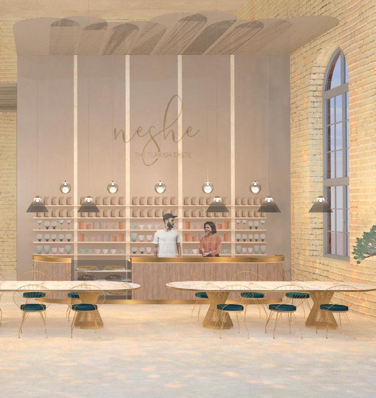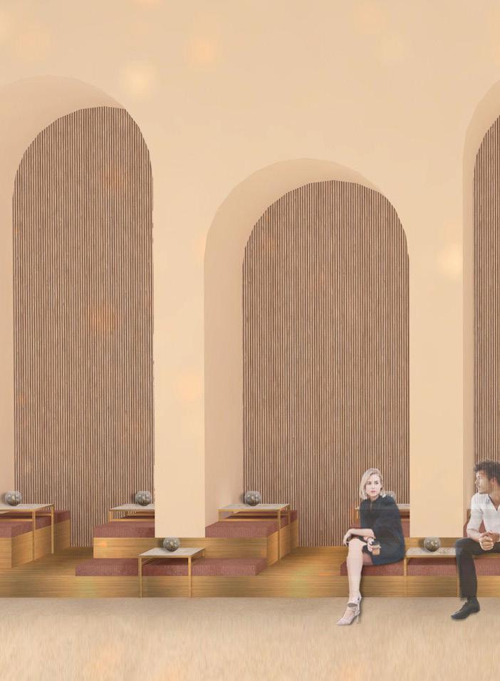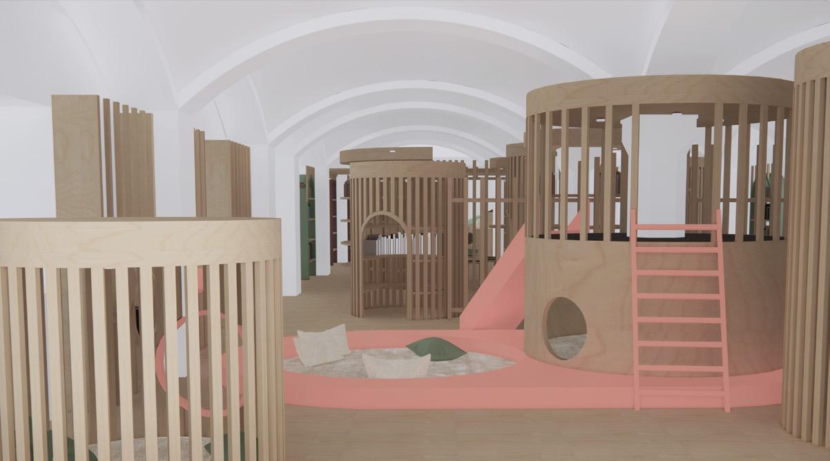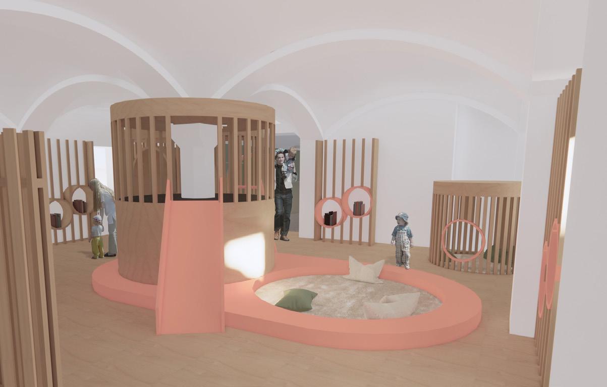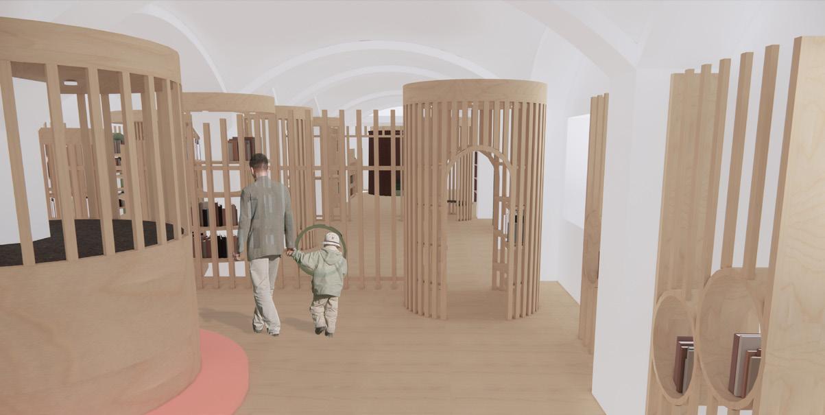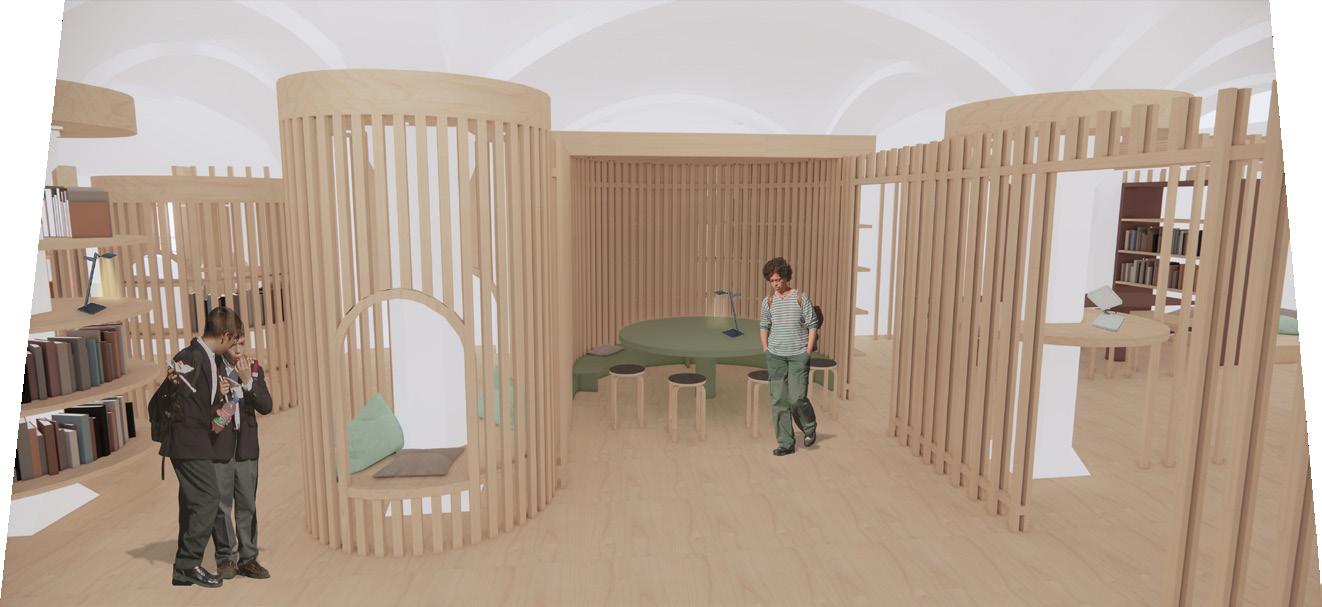 Das von Lena-Marie Schuh und mir entworfene Gästehaus ist eine 200m² große, symetrisch aufgebaute Wohnung. Im Nor den befinden sich die Schlafzimmer, beide jeweils mit einem begehbarem Schrank und privatem Bad. Zusätzlich befindet sich im Flur ein Gäste WC und ein kleiner offener Raum. Diese Bereiche haben eine Raumhöhe von 2,50m. Der südliche Teil des Wonraums hat eine Deckenhöhe von 5,40m. Hier befinden sich Wohnzimmer, Küche und Terasse mit einem Swimming-Pool. Circa ein Viertel des Pools schnei det in die Wohnfläche ein, wodurch eine Überdachung des Schwimmbereichs ermöglicht wird. Im Innenbereich kann diese Einragung als Galerie benutzt werden. Eine weitere Be sonderheit ist das große Fenster zwischen dem Wohn- und Essbereich wodruch viel Tageslicht in die Wohnung gelangt und zusätzlich ein toller Ausblick in die Natur ermöglicht wird. Durch die unterschiedlichen Dachhöhen des Gasthauses ent steht im nördlichen Teil eine große Dachterasse. Diese kann durch die Kragtreppen im Wohnzimmer betretet werden.