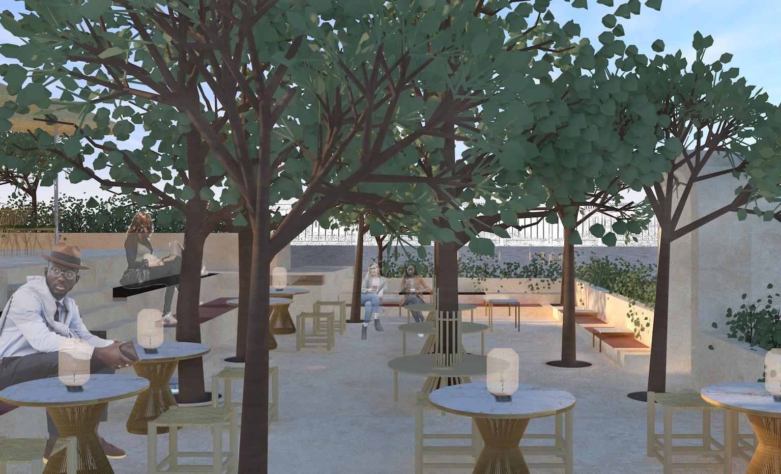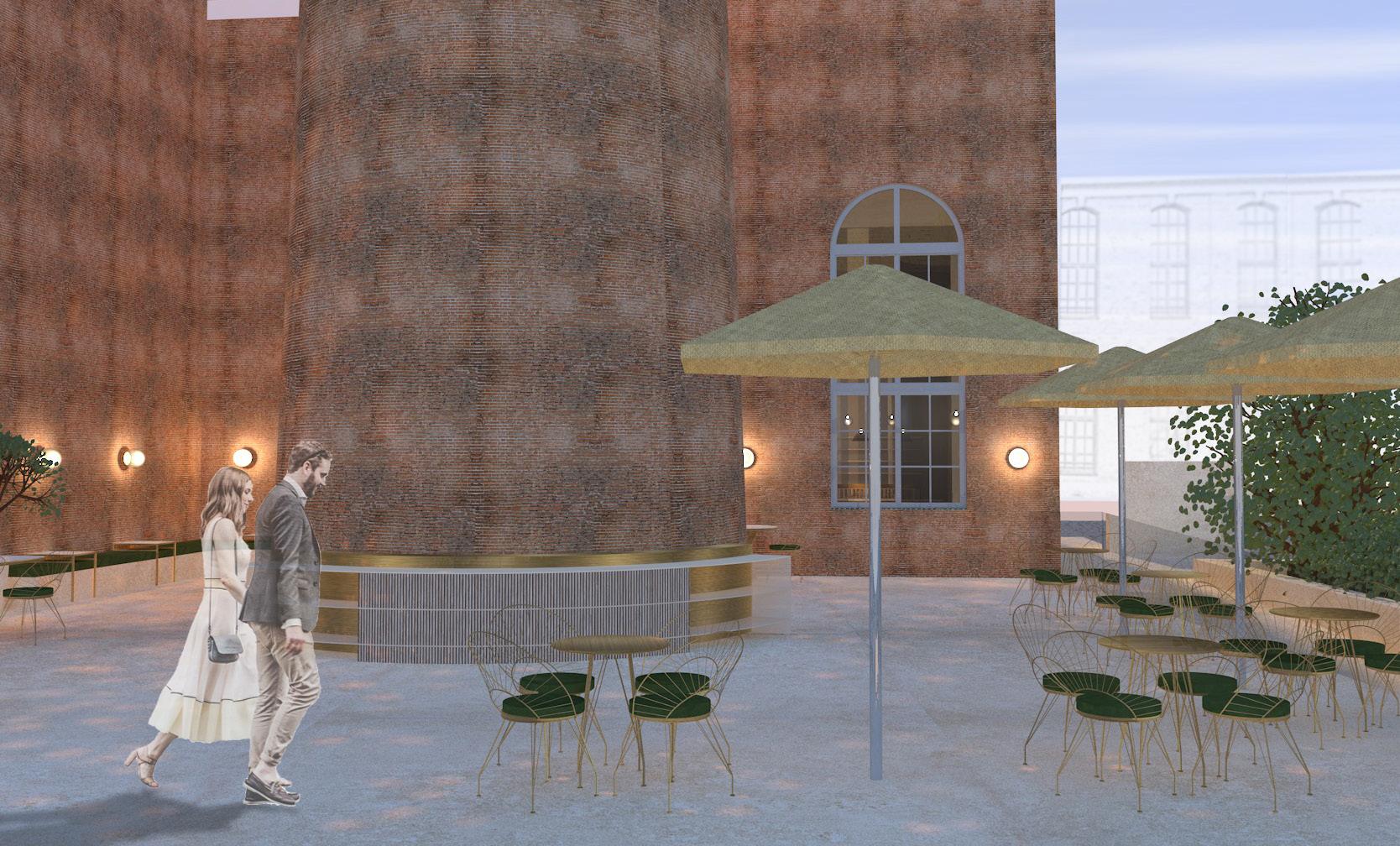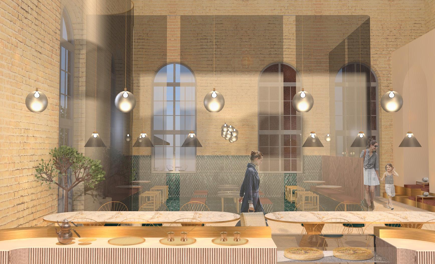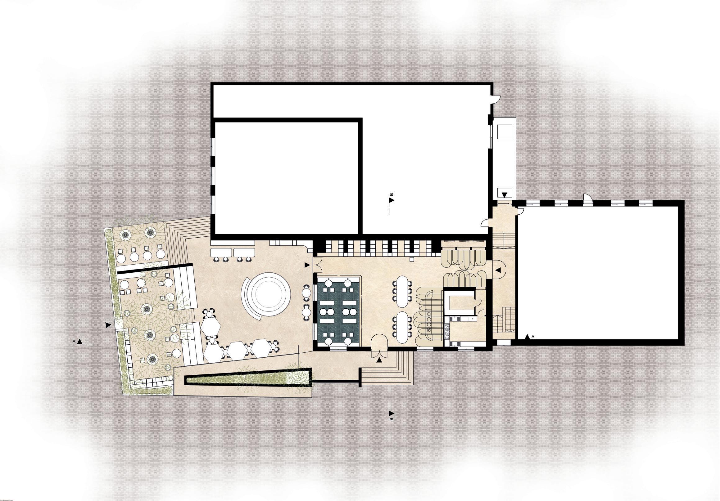 Das von Lena-Marie Schuh und mir entworfene Gästehaus ist eine 200m² große, symetrisch aufgebaute Wohnung. Im Nor den befinden sich die Schlafzimmer, beide jeweils mit einem begehbarem Schrank und privatem Bad. Zusätzlich befindet sich im Flur ein Gäste WC und ein kleiner offener Raum. Diese Bereiche haben eine Raumhöhe von 2,50m. Der südliche Teil des Wonraums hat eine Deckenhöhe von 5,40m. Hier befinden sich Wohnzimmer, Küche und Terasse mit einem Swimming-Pool. Circa ein Viertel des Pools schnei det in die Wohnfläche ein, wodurch eine Überdachung des Schwimmbereichs ermöglicht wird. Im Innenbereich kann diese Einragung als Galerie benutzt werden. Eine weitere Be sonderheit ist das große Fenster zwischen dem Wohn- und Essbereich wodruch viel Tageslicht in die Wohnung gelangt und zusätzlich ein toller Ausblick in die Natur ermöglicht wird. Durch die unterschiedlichen Dachhöhen des Gasthauses ent steht im nördlichen Teil eine große Dachterasse. Diese kann durch die Kragtreppen im Wohnzimmer betretet werden.