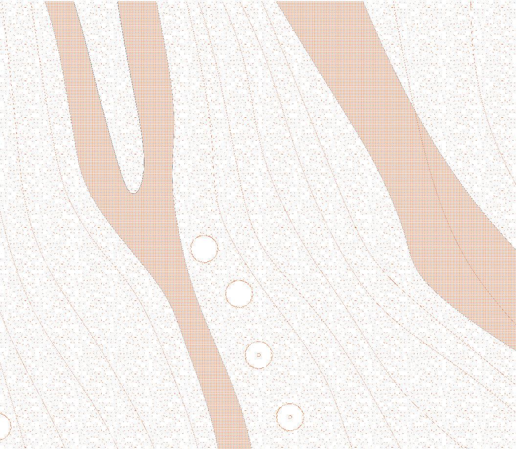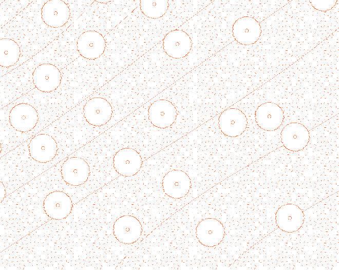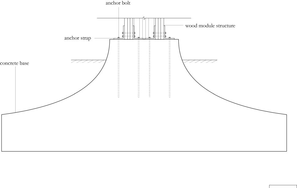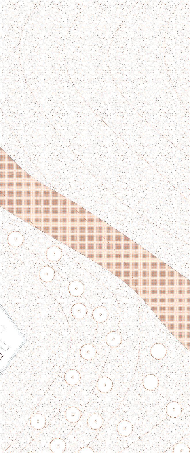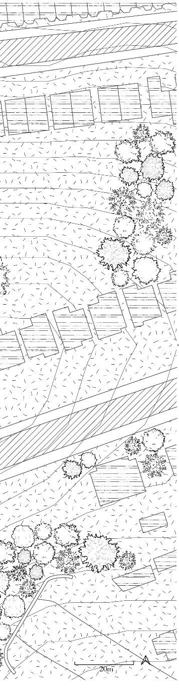 Clusters of modules are placed across the site according to existing sun conditions, with the tallest and highest density of modules in areas of max lighting. Clusters are accessed via two levels of service paths which are connected to the lower public pathway by vertical circulation cores. The treated wood of the public path and the steel grating of the service paths allows for circulation throughout the site to remain after the modules decay.