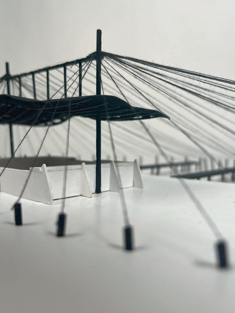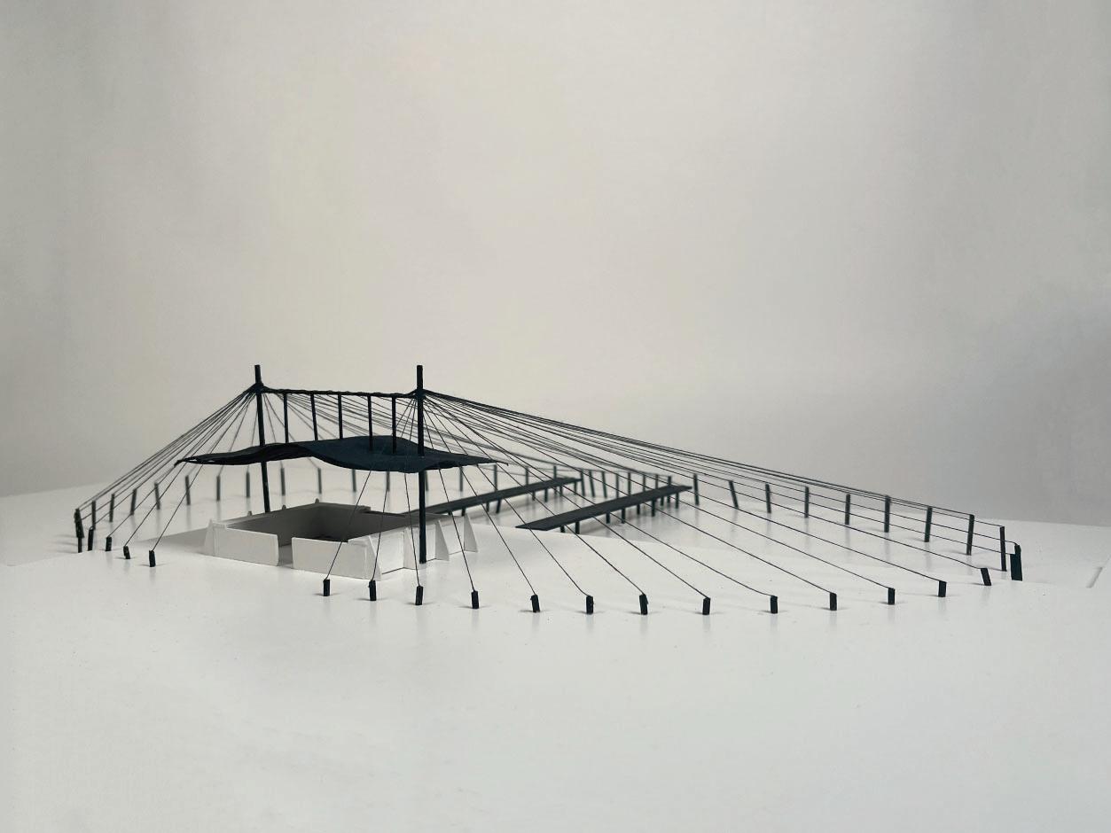 Located along the coast of Brooklyn in Sunset Park, this salt shed is inspired by the community’s history of sailing and fishing. Cables ascend from the raised roof of the salt shed to define an outdoor space that merges with the water. From afar, the cables rise above the buildings to mimic the sailboat masts that once indicative of the proximity to the coast.