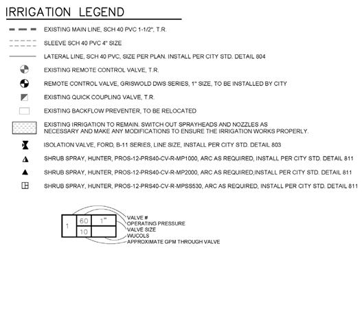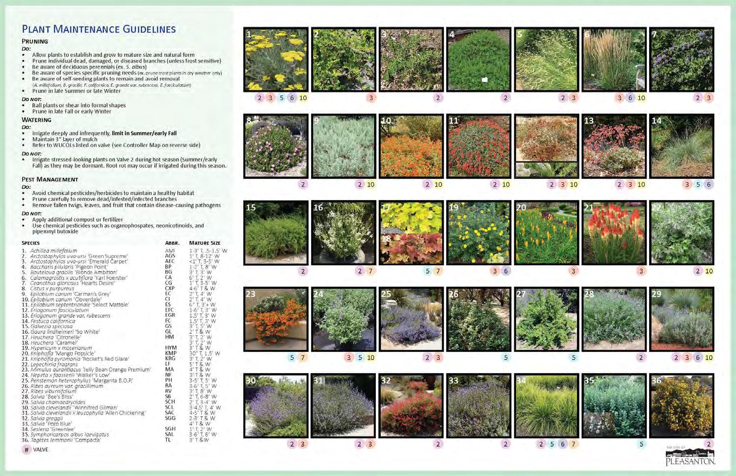 A two-sided controller map includes a quick reference guide for Parks maintenance staff to refer to in the field. Below each plant photo is the valve number shown in a colored circle and corresponds to the colors on the controller map.