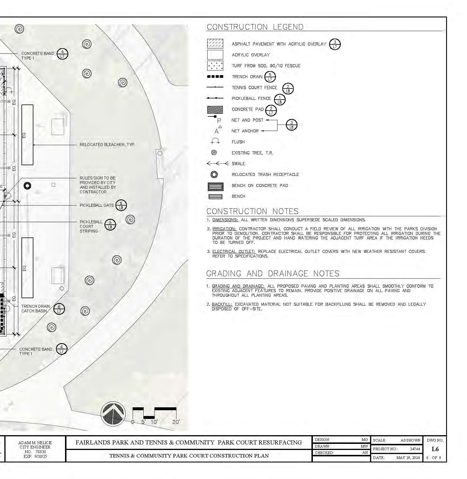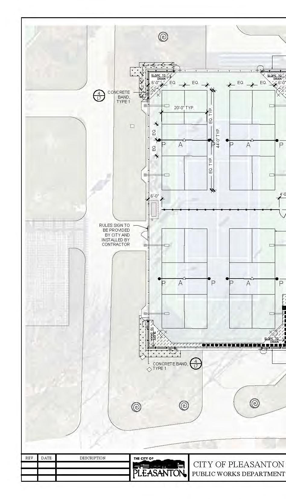 Construction document samples from projects with the City of Pleasanton, including 200 Old Bernal and annual tennis court resurfacing.
