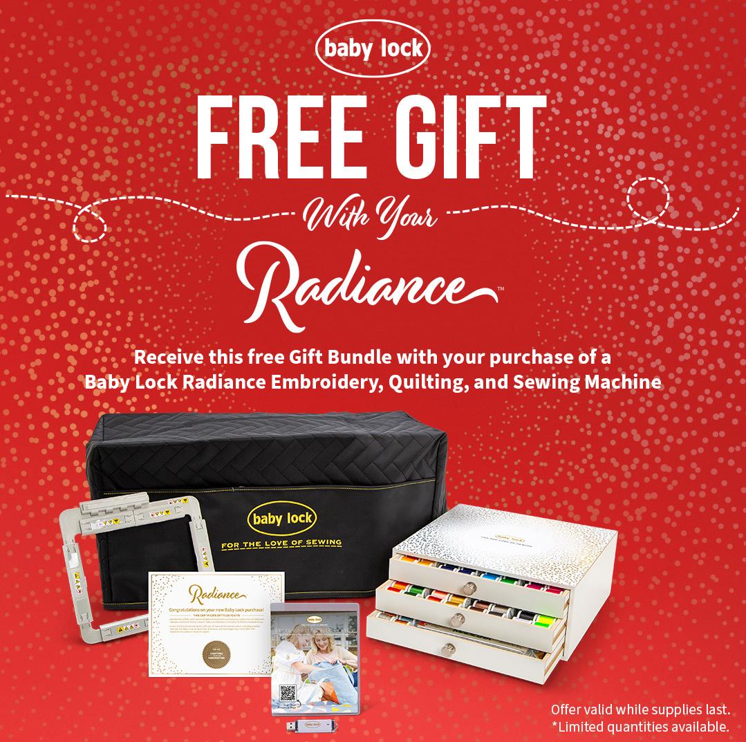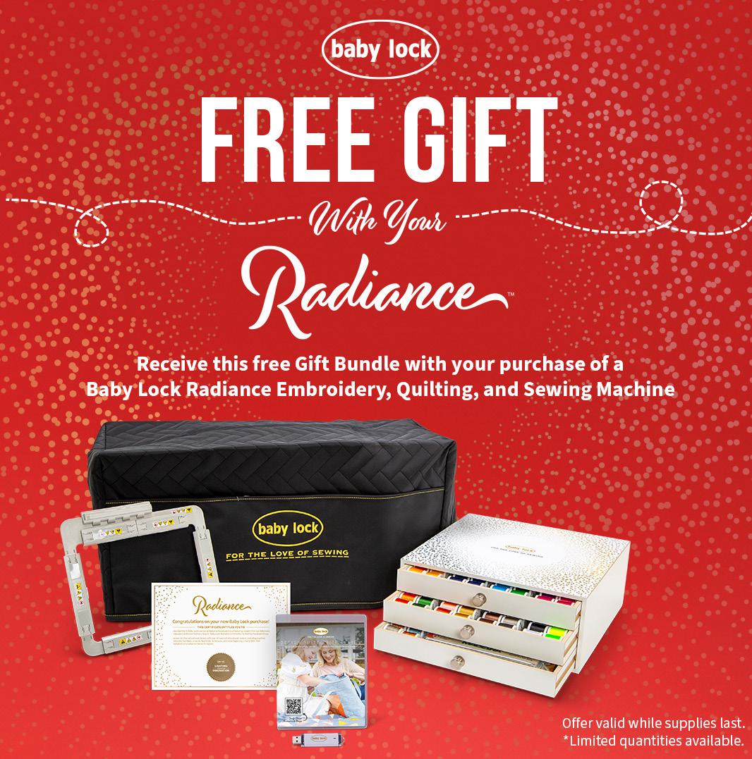 The 2024 Baby Lock Radiance is the ultimate machine for sewists, quilters, and embroiderers who want top-tier innovation and precision. Its groundbreaking features make it easy to create intricate designs and master advanced techniques. Reserve your Radiance today with a deposit and unlock endless creative possibilities!