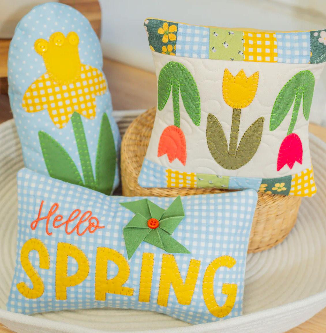 Enjoy seasonal smiles with Kimberbell Cuties, Vol. 2: April! Made entirely in-the-hoop of your embroidery machine, our quilted table toppers celebrate the first half of the year with pieced blocks and darling designs.