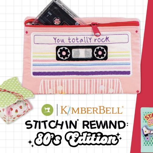 At Kimberbell’s Stitchin’ Rewind: 80’s Edition one-day event, you’ll make three nostalgic projects from the 1980s! Create a Mixtape Zipper Pouch and Strawberry Shortcake Gift Bag in-the-hoop, then stitch a Choose Happy Patch to pin to your jelly vinyl event bag! With vibrant colors, alternate designs, and totally tubular techniques, our one-day event is where machine embroiderers go when they just wanna have fun.