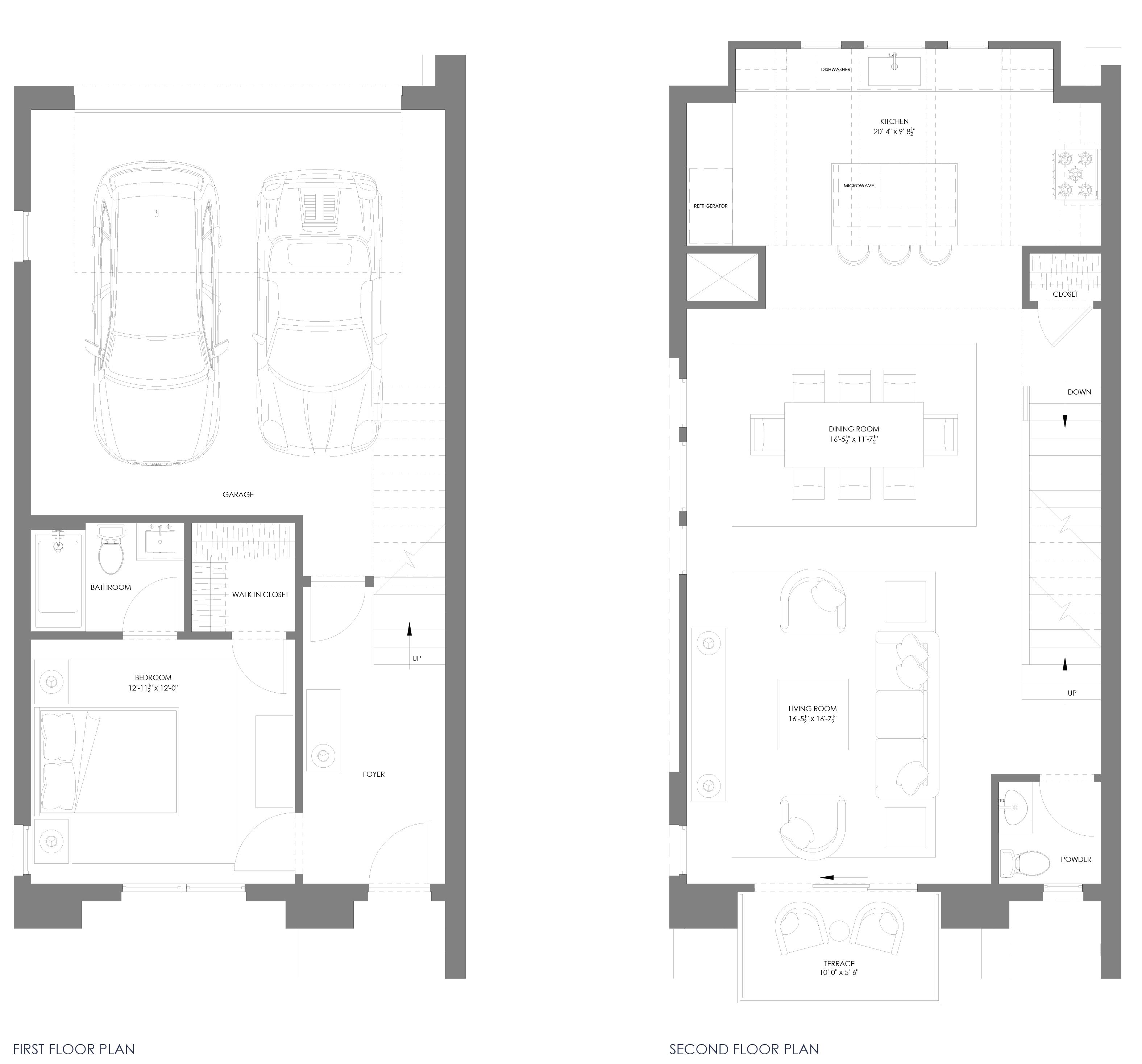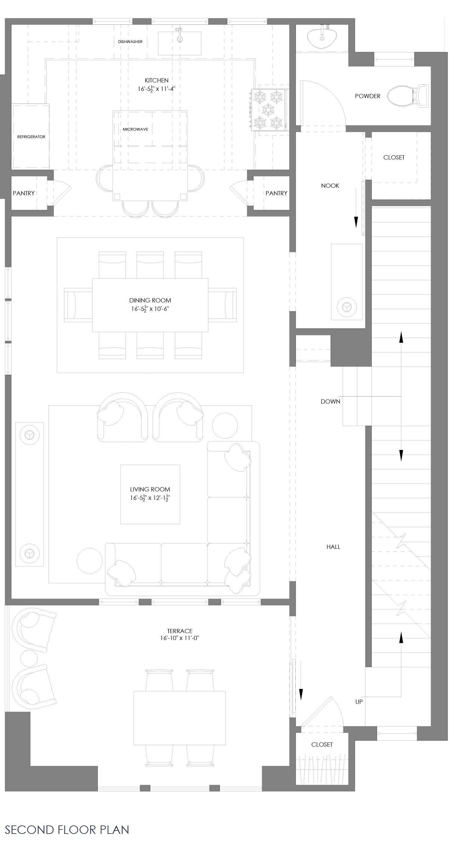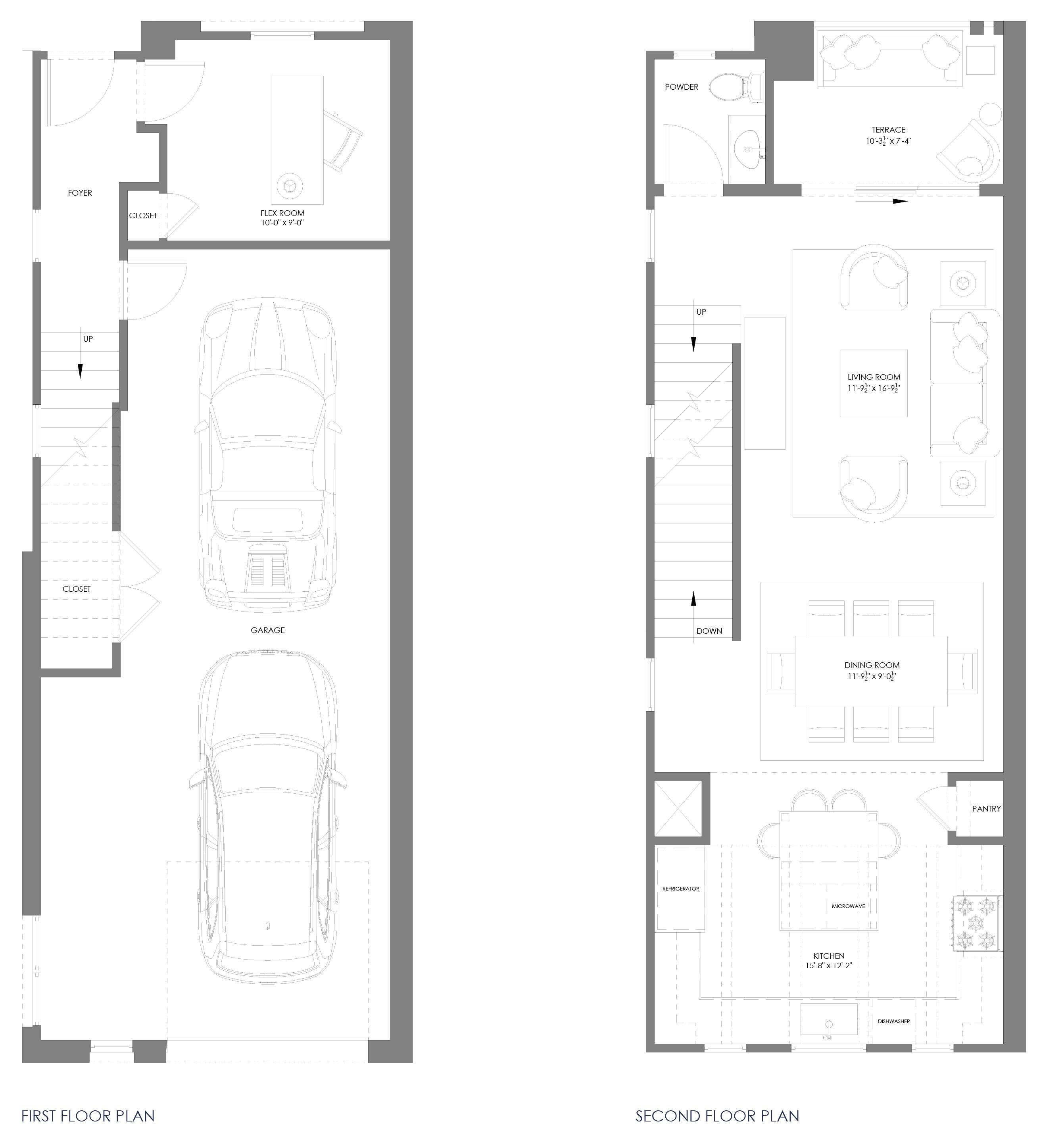 Chelsea Plan 2,446 Sq Ft 3 Bed 3 Bath 1 Half Bath UP GARAGE FOYER FLEX ROOM 8'-31" x 18'-11" MICROWAVE DISHWASHER REFRIGERATOR TERRACE 10'-6" x 6'-61 2 UP DOWN LIVING ROOM 16'-5 " x 15'-9" POWDER DINING ROOM 16'-51 2 x 11'-11 " KITCHEN 20'-4" x 10'-8" PANTRY SECOND FLOOR PLAN FIRST FLOOR PLAN