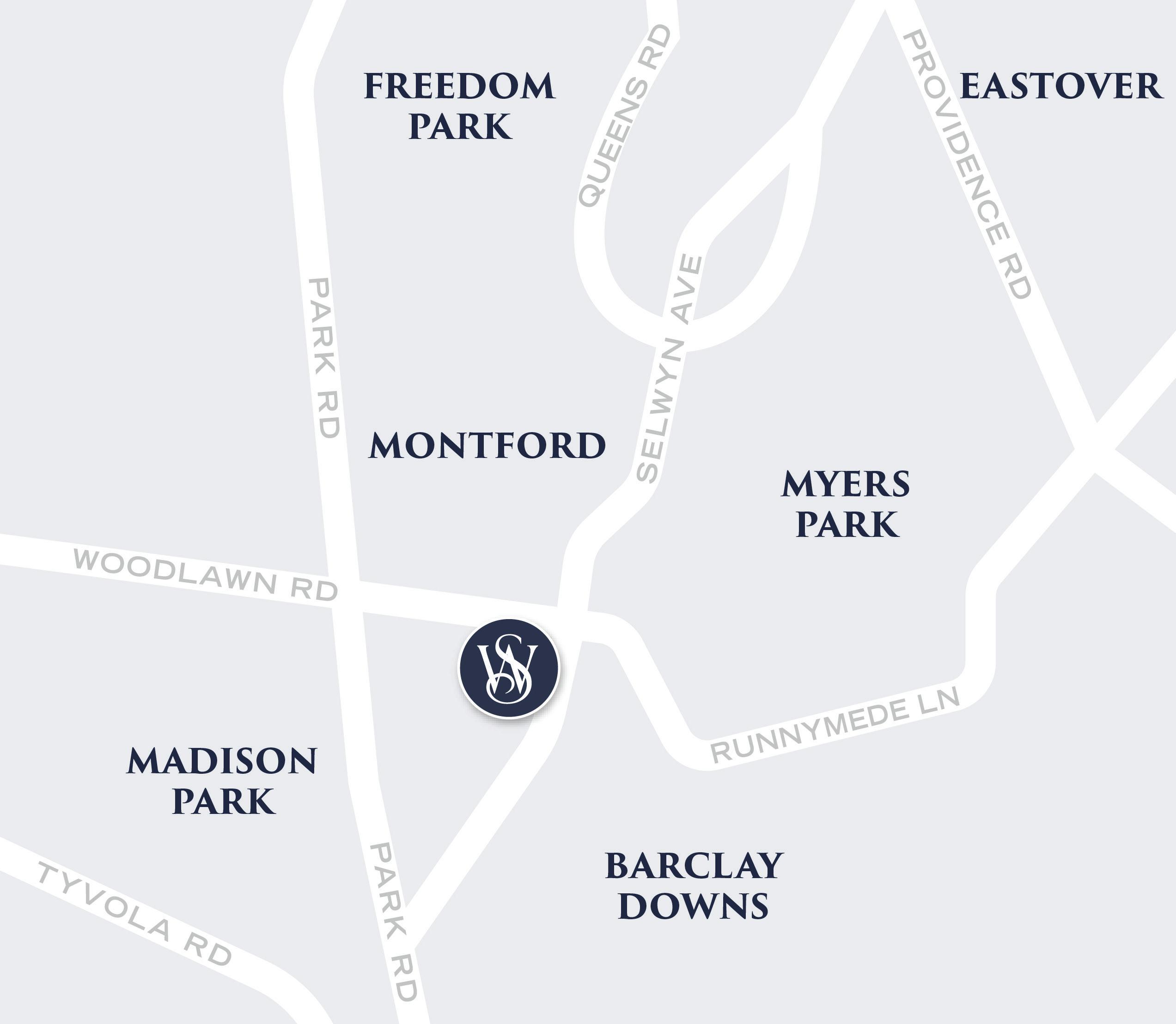 Stroll tree-lined streets to boutiques and dining on Selwyn Avenue. Meander down to the iconic open air Park Road Shopping Center for shopping, coffee, and eateries. Cruise over to Montford Drive’s unique selection of dining and nightlife.