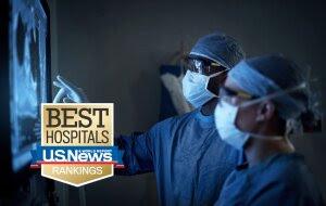 U.S. News 2024-2025 Best Hospitals Honor Roll Shot of two surgeons analyzing a patient’s medical scans during surgery