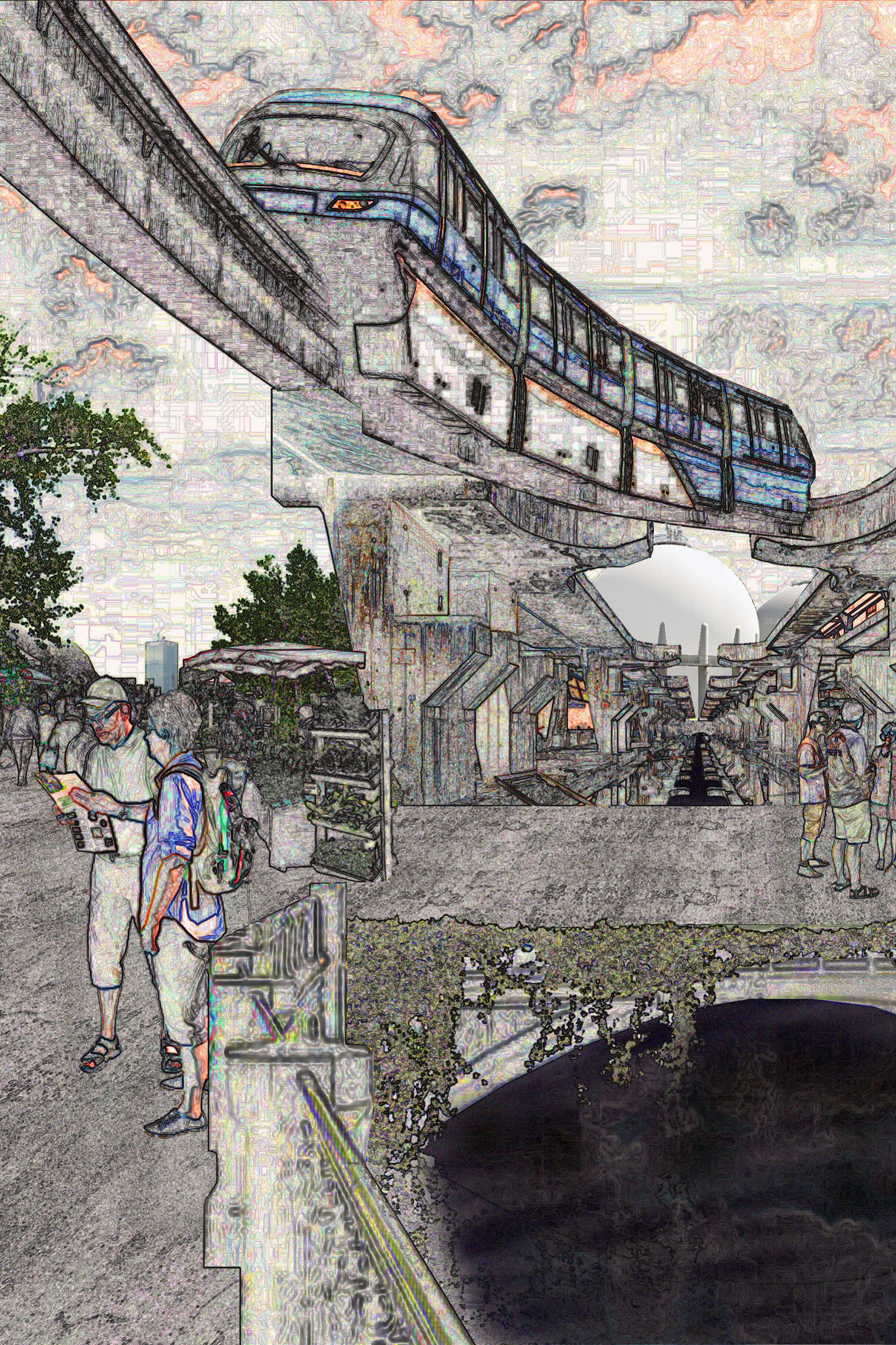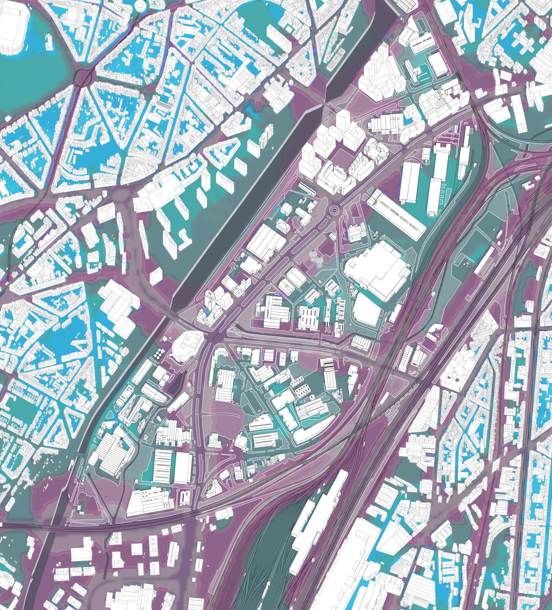 Pas sans éveiller quelques doutes compte tenu de l’ample échelle territoriale d’étude, au prisme des constats et positions développées et afin de proposer une réelle immersion dans le nouveau paysage urbain, les trois synthèses sous forme de vues déployées ci-après tentent de conjuguer dans leurs expressions impératifs de maintien des activités et de l’héritage patrimonial tout en reconquérant des espaces délaissés.