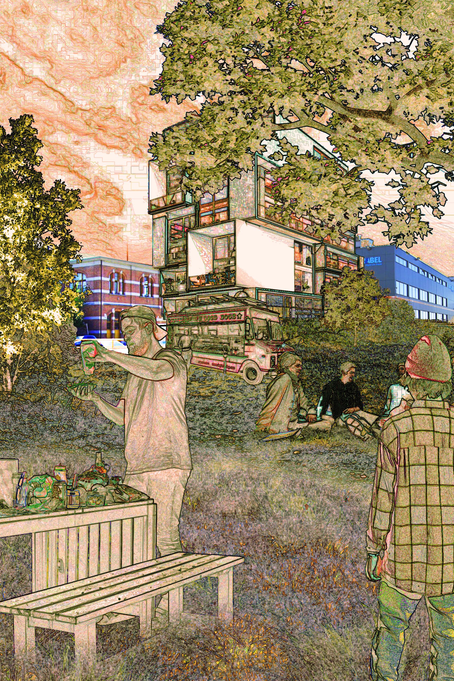 La nouvelle couche du palimpseste architectural, comme manifeste d’un droit à la ville retrouvé et d’usages innovants, objective la ville comme terrain d’expérimentations, il devient d’ici possible de voir dans l’indétermination d’un isolat d’infinies possibilit és d’aménagement dès lors que l’enclavement non plus pensé comme contrainte pour la cohésion de la ville lève le voile sur une idée nouvelle de ce qu’est éprouver la liberté : celle de créer dans son quartier, d’y répondre à ses besoins primaires et secondaires, d’y échanger, de s’y émanciper, en somme de s’y retrouver.