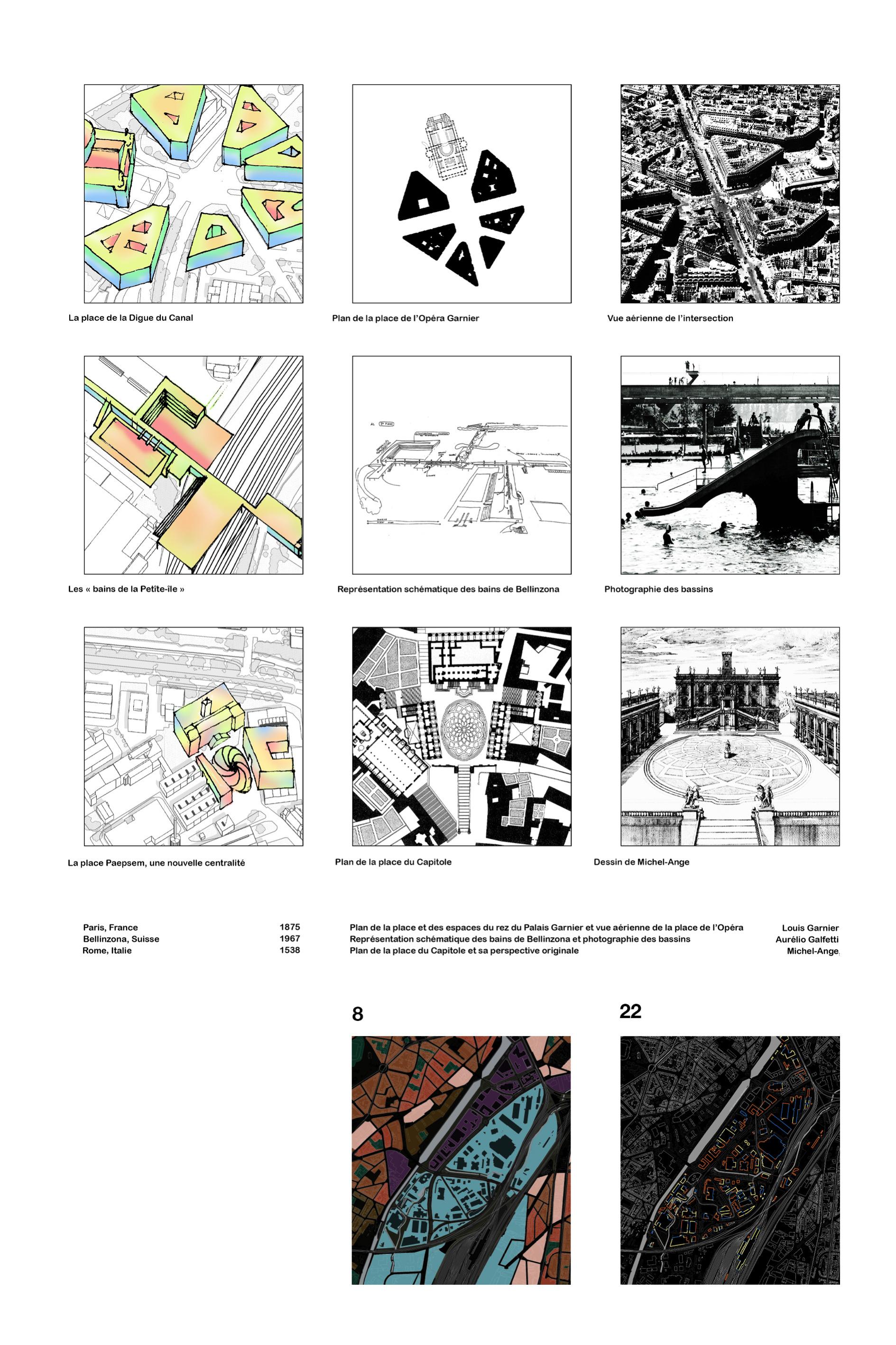 Une logique persistante de mise en confrontation de la documentation graphique, cherchant à illustrer de la manière la plus lisuelle les constats réalisés au fil des analyses entreprises afin qu’ils trouvent en tant que tels un intérêt particulier régira la structure de l’argumentation. Le texte viendra quant à lui clarifier et ajouter de l’information à celle-ci.