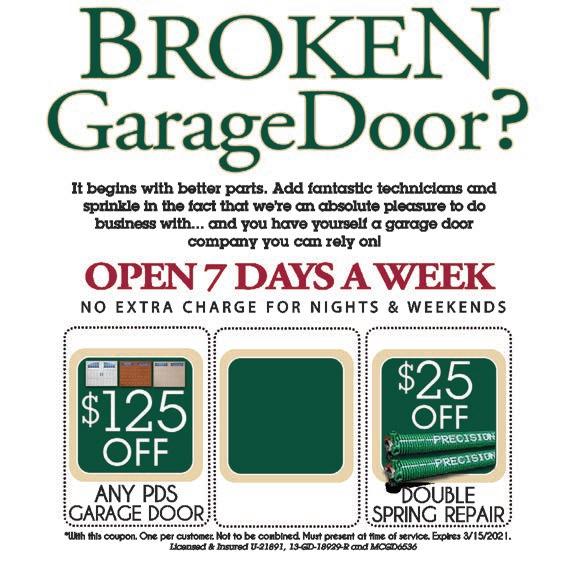 44 VOL. 559 A Copyrighted© My Living Media. 2023 All Rights reserved. To Advertise call 772-247-6849 Need More Coupons - MyLivingMedia.com Brighten Your World! • Window Cleaning • Screen Cleaning • Sill Cleaning • Skylight Cleaning • Awning Cleaning • Chandelier Cleaning • Light Fixture Cleaning • Ceiling Fan Cleaning RESIDENTIAL • COMMERCIAL 772-732-4632 1025 SW Martin Downs Blvd, Suite 106, Palm City $25 Any Job $150 or more With this MLM coupon only. Expires 2/17/23 FREE Estimates OFF AL CORNACCHIO, AGENT 3727 SE Ocean Bvld. Suite B | Stuart the sewall’s point office plaza email: Al.Cornacchio@goosehead.com 772-208-5504 opt.2 DO YOU KNOW WHAT YOU’RE PAYING FOR? • Quotes within 1 hour • Policies issued same day • Older roofs OK • Older homes OK LET ME HELP YOU PROTECT YOUR LARGEST ASSETS AND MAKE SURE YOU’RE PAYING FOR THE RIGHT COVERAGES Live 24/7 Answering PDSMartin.com Locally Owned & Operated 772-732-2136 Expires 2/4/23. Our proprietary springs will not rust or corrode and last up to 4 times longer! FREE OPENER For NEW Garage Door Regular $65000 CANNOT BE COMBINED WITH OTHER OFFERS. MUST PRESENT AT TIME OF SALE. DOES NOT APPLY TO PREVIOUS SALES. EXP 2/4/23