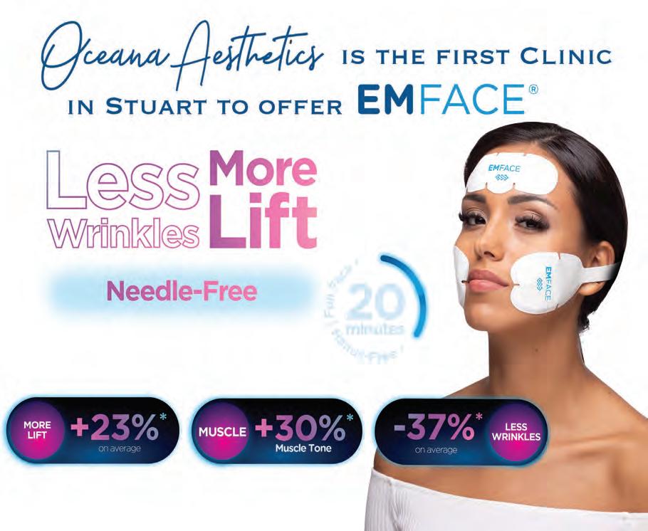 Oceana Aesthetics is located at 844 SE Ocean Boulevard in Stuart. The of ce is open Monday-Friday from 9AM-5PM. To schedule your complimentary consultation, call 772-492-4360 or visit oceanaaesthetics.com.