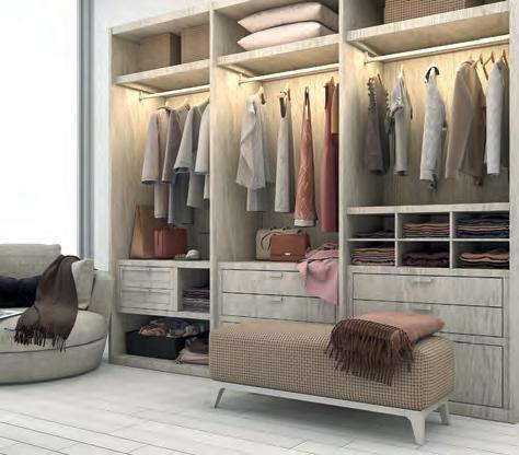 When you’re in the mood for something modern and bold, the Brio Collection™ answers the call. Sleek corners and clean edges surround the system of atfront doors and drawers. Display your carefully curated wardrobe against a clean nish for a timeless look.