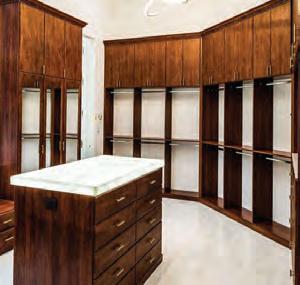 The process starts with the experts at Closets by Design of the Palm Beaches and Treasure Coast measuring your space and itemizing your belongings, then showing you ideas and samples to help you nd a style that’s just right for you. From there, your designer will work with you to custom design your space using dozens of material options and hundreds of features from one of their 4 collections.