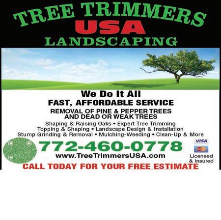 34 VOL. 556 B Copyrighted© My Living Media. 2022 All Rights reserved. To Advertise call 772-247-6849 Need More Coupons - MyLivingMedia.com Residential & Commercial Lawn Care! Licensed & Insured 772-528-4386 Call Maurice Today! We Solve All Of Your Drainage Issues mauriceslawn@gmail.com Text for Faster Response! Lawn & Irrigation We Palms!Sell 772-528-4386 Always on the cutting edge! SERVICE CALL with Any Repairs Done Certain Restrictions apply. Expires 1/6/23 FREE Affordable Prices! • Complete Landscape & Design • Field Grown Palms • Tree Removal • Bobcat Services • Paver Repair & Sealing • Wells • Sprinkler Install • Pumps & Timers Look No Further for the Experts in Pool Heating • Heat Pumps • Solar • Gas FAMILY OWNED AND OPERATED STATE LICENSES #CP-CO57115 • #CVC 56745 • NAT/LP 26278 HUGE DISCOUNTS FACTORY DIRECT! Heat Pumps • Solar • Gas Salt Chlorination Pool & Spa Automation Pool Pumps & Filters Pool Resurfacing Coping • Tile Renovate Your Existing Pool Today! tropicalpoolheating.com Your Pool Heating and Renovation Specialist FREE 11”x10” Mosaic With Swimming Pool Resurfacing Purchase With this MLM coupon. Expires 1/10/23 FREE 5% Off Purchase Price Of Any Salt Chlorinator, Pool/Spa Automation, Pump, or Filter With this MLM coupon. Expires 1/10/23 FREE Estimate! 561-745-1163 SAME-DAY ESTIMATES HEATING & RENOVATION A COLD POOL IS NO POOL 8735 South US Highway 1, PSL $5 With $25 or more Purchase Expires 12/31/22 RESALE BOUTIQUE 772.208.7211 Senior Day Every Wednesday 10%off • Jewelry • Accessories • Handbags • Plus Sizes Available • Furnishings • Ladies’ Clothing • Florals Tues-Fri 10am-5pm • Saturday 10am-3pm