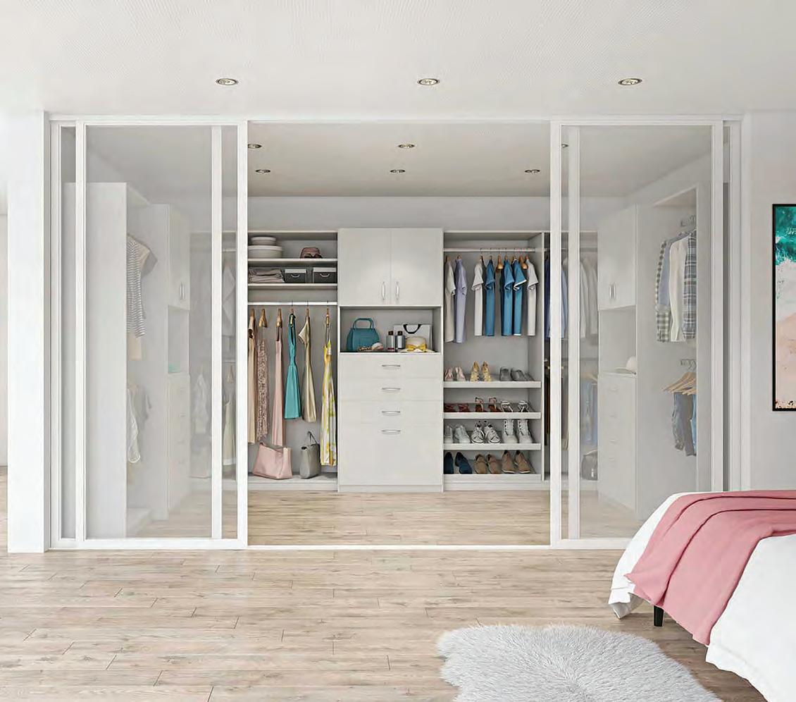 When you’re in the mood for something modern and bold, the Brio Collection™ answers the call. Sleek corners and clean edges surround the system of at-front doors and drawers. Display your carefully curated wardrobe against a clean nish for a timeless look.