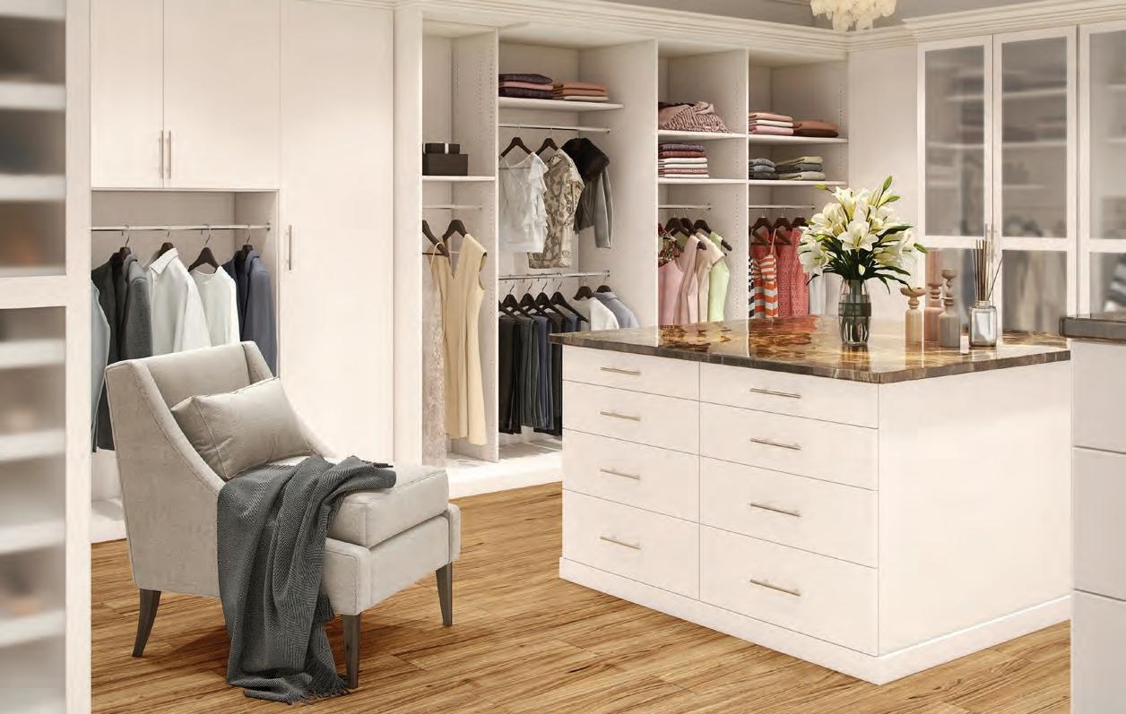 The Regency Collection™ incorporates 1 1/8” thick panels with 3/4” shelving for a sophisticated look you’ll love for years. Add tilt-out hampers, islands, and countertops to create a convenient, stylish space that has everything you need.