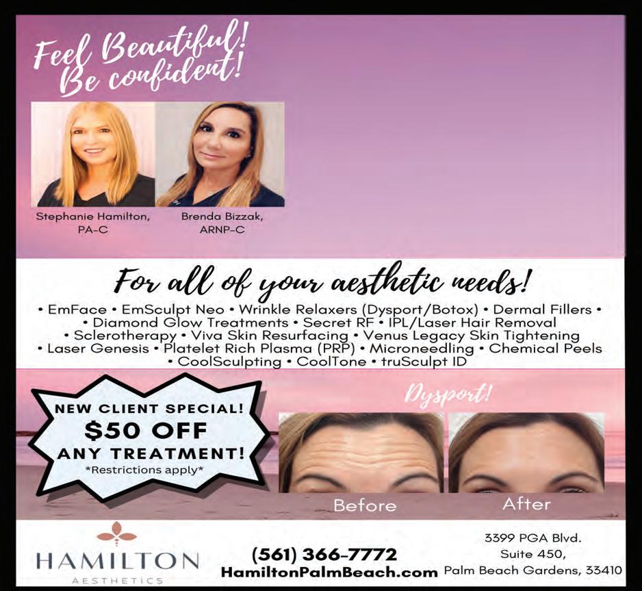 34 VOL. 565 I Copyrighted© My Living Media. 2023 All Rights reserved. To Advertise call 772-247-6849 Need More Coupons - MyLivingMedia.com IF YOU ARE WAITING FOR A SIGN THEN THIS IS IT! WAHLBERG WEEK. 7 BRAND NEW WORKOUTS. MEMBERS & NON MEMBERS WELCOME. GET READY! TEAM TRAINING. LIFE CHANGING. RESULTS DRIVEN. 5500 MILITARY TRAIL, JUPITER 561-400-0505 • FUNCTIONAL TRAINING • BUILDING A COMMUNITY • INDUSTRY-LEADING TECHNOLOGY f45training.com F45 Jupiter 5500 Military Trail Jupiter Fl 33458 561-644-8110 (Located in the Publix Plaza) F45 Palm Beach Gardens – NOW OPEN 4773 PGA Blvd Palm Beach Gardens, FL 33458 561-400-0505 *New Clients Only JOIN TODAY BY TEXTING OR CALLING ONE FREE WEEK FROM APRIL 17-23RD ONLY Medical Director Dr. Allyson Deziel, MD FACS Board Certi ed Facial Plastic Surgeon. The patient and any other person responsible for payment has a right to refuse to pay, cancel payment or be reimbursed for payment for any other service, examination or treatment that is performed as a result of and within 72 hours of responding to the advertisement for the free, discounted fee or reduced fee service, examination or treatment. New customer Discount Offer cannot be combined with any other offers, services or discounts. EMPOWER YOURSELF EMFACE® NON-INVASIVE FACELIFT Call NOW for your FREE consultation 30% FAT REDUCTION 25% MORE MUSCLE EMSCULPTNEO® Glenda Grady ARNP-C Dysport or Botox!
