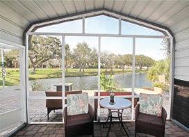 BIG O - Active 55+ Community -- double lot with a beautiful park model. It has a patio area with outdoor furniture, a walk way to the garage which has a screen room on the back side. It looks over a pond and has a spectacular million dollar view. The pond is stocked with sh and you can sit and sh off your seawall. New 2022 Metal Roof fully permitted, 2022 new laminate ooring. A half bath with a washer and dryer. 2022 installed French doors, AC 2021, hot water heater 2021, 2022 new light xtures in the kitchen, Bahama Shutters and regular hurricane shutters. There is Botchy Ball, pool, Bingo, cards, line dancing, corn hole, shing tounaments, craft shows. You have it all right here. Come and join the fun.