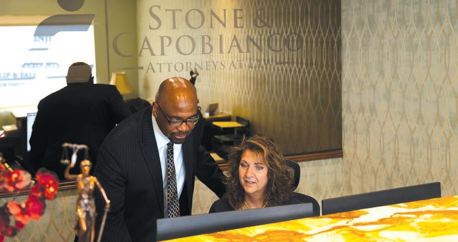 What’s unique, too, about Stone & Capobianco is that as their client, you really bene t from receiving the legal expertise of not just one lawyer, but two! Though they focus on different areas of representation, Attorneys Stone and Capobianco consult regularly, drawing on each other’s diverse and comprehensive knowledge and experience to ensure that clients receive unparalleled advocacy for their unique cases.