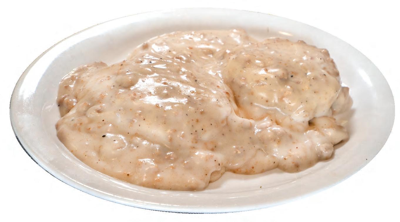 Per our server’s recommendation, Abby also tried a full order of biscuits and gravy ($9.95). She especially enjoyed the biscuits, which she complimented for being “soft and fluffy.” In fact, she said, “I would order one of these on its own to eat just with butter or jam!”