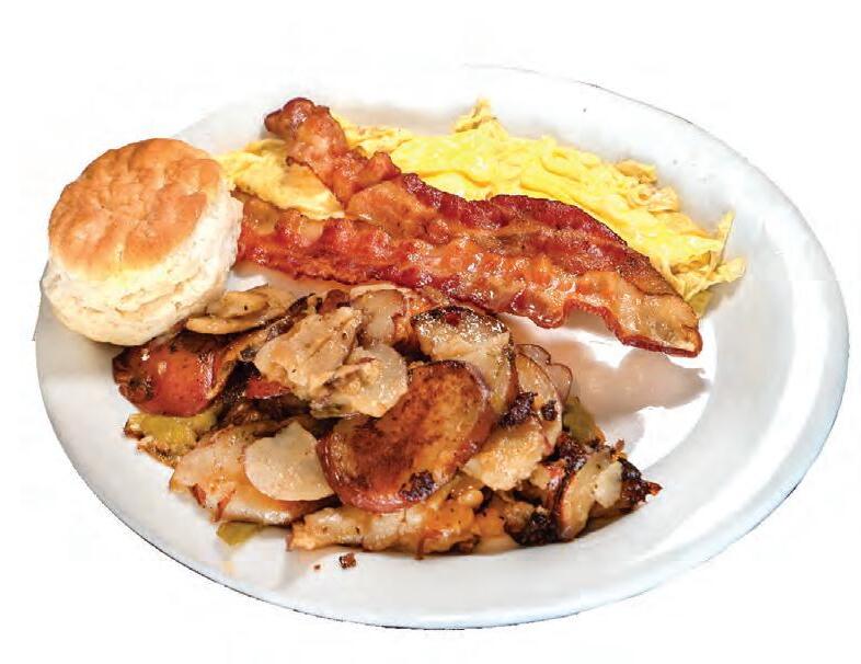 Walk into Mama Lisa’s Bistro and immediately feel at ease. Black and white gingham tablecloths and curtains cheer the naturally bright, cozy dining room. The smell of freshlymade coffee lingers in the air as the griddle in the kitchen tempts you with the sound of its sizzling. And, a smiling face welcomes you to choose the table or booth of your liking. The family-friendly restaurant most definitely invites you with open arms, promising a wide variety of classic breakfast, brunch, and lunch favorites, all at incredibly reasonable prices, to please any personality.