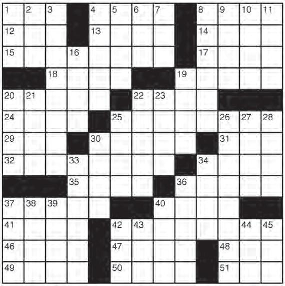 PUZZLE PAGE CROSSWORD ACROSS 1 Venus, to Serena 4 Sad 8 Padlocked fastener 12 E.T.’s craft 13 Slithery 14 New York canal 15 Sobriquet 17 Karate level 18 Poolroom prop 19 Livid 20 Fury 22 Coal source 24 Loathe 25 “The -- Papers” (Dickens novel) 29 Bird (Pref.) 30 Hay bundles 31 -- chi 32 Fined for speeding, e.g. 34 Shopper’s aid 35 Geese formations 36 Selects from a group 37 Everglades wader 40 Delhi dress 41 Hip 42 Popular playground game 46 Corridor 47 Adhesive 48 Born abroad? 49 Rhyming tributes 50 Hotel furniture
