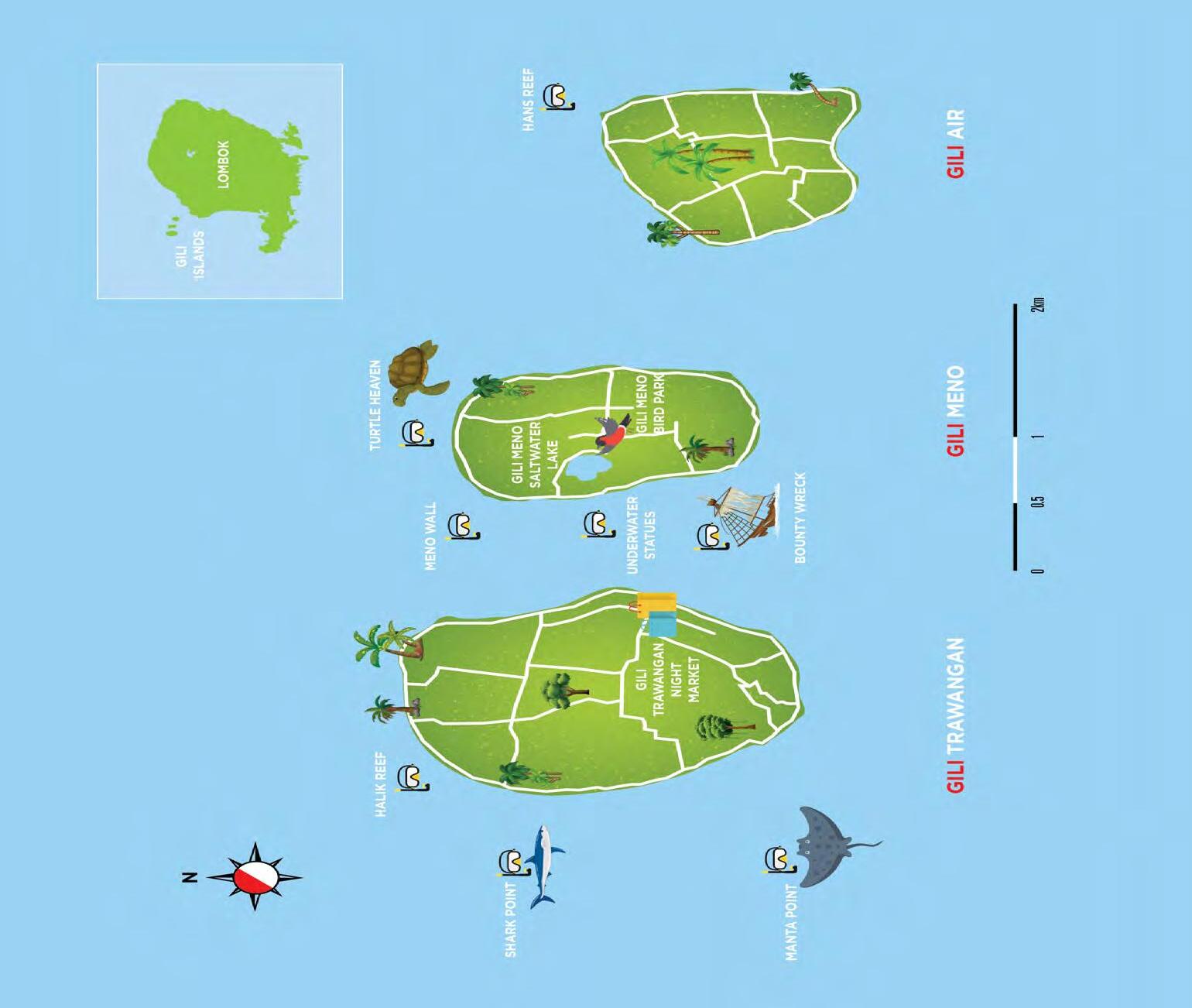 Senol’s friends, Sandi and Muding, have opened the SALFA STORE in Gili Air. It offers spearfishing and snorkelling tours as well as diving equipment. Tourists can experience spearfishing, with instruction and equipment provided, as well as refreshments and a fish BBQ afterwards.