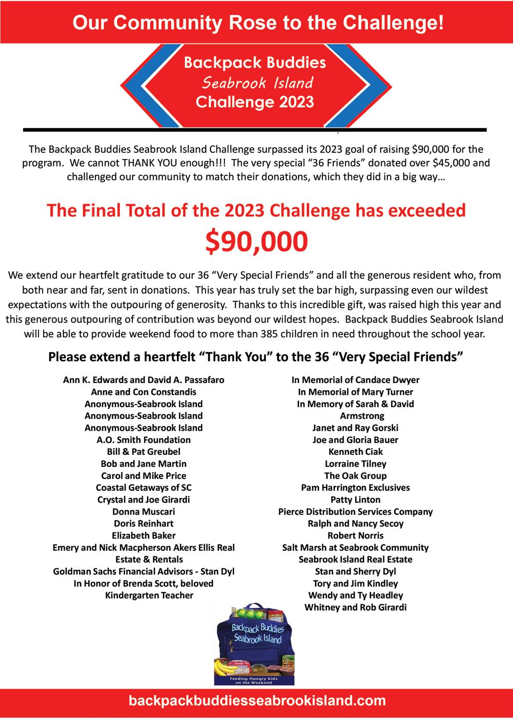 The Sea Islands Hunger Awareness Foundation is excited and thankful for the loyal donors who have so generously offered to match our $100,000 - 2023 Hunger Awareness Challenge. As we approach the season of giving, we hope you will join us in raising awareness and much needed funds to support our programs and partners in their quest to provide nutritious food and clean water to sea island neighbors for the coming year.