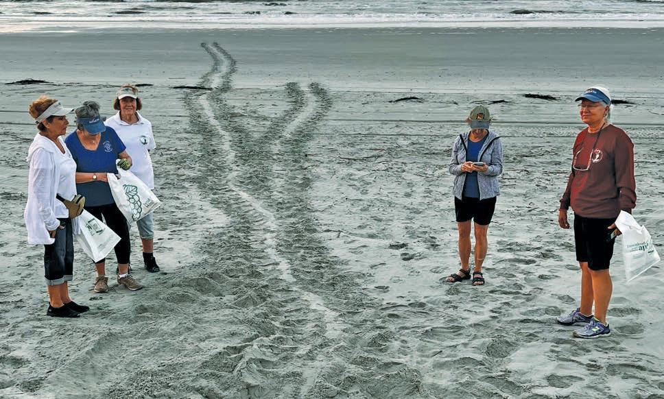 Turn off flashlights and don’t use flash photography. If you see a nesting turtle on the beach, stay back at least 50 feet and do not disturb her. Report any stranded turtles, dead or alive, to 843-697-8733 or 843886-6522. If it has orange paint on it, it has been documented and is awaiting burial.