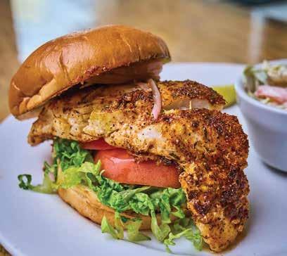 including the blackened triggerfish sandwich, the Refuge Reuben and the crab cake sandwich — locals quietly debate which one reigns supreme. Soups, salads, wraps and brunch cocktails round out the offerings if you’re making a day of it.