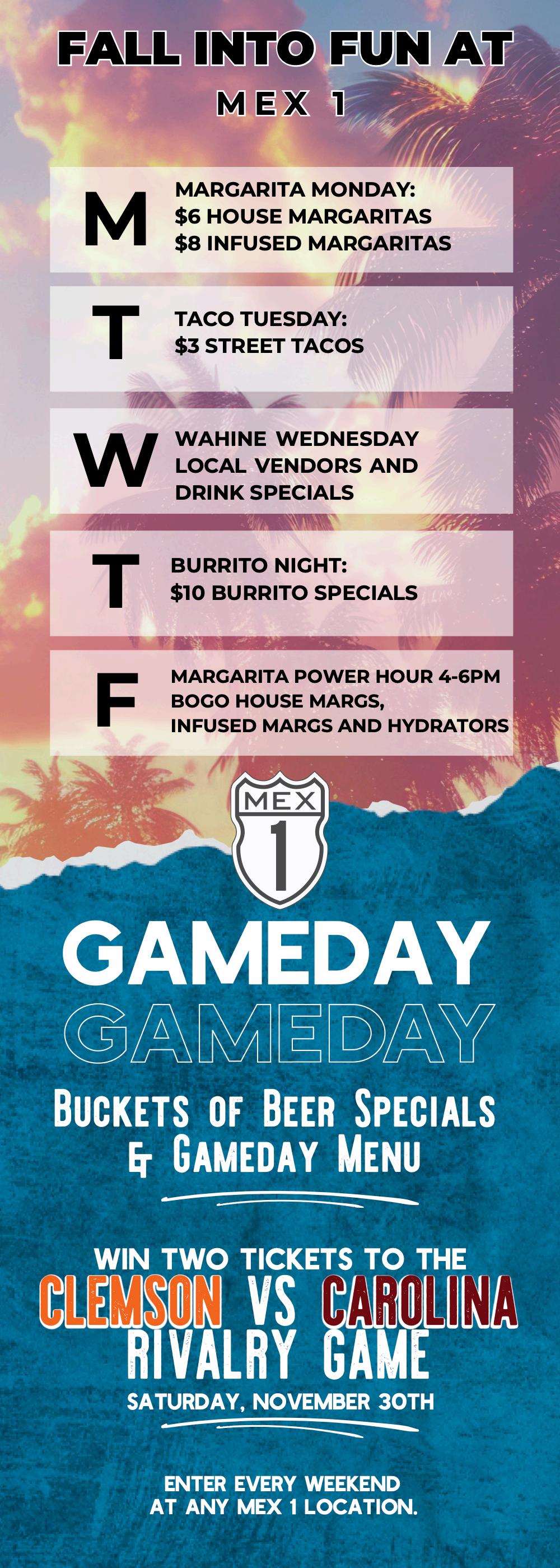 Seasonal Specials to Savor: As the leaves start to turn, so does the Mex 1 menu This fall, they’re rolling out a big game day menu, perfect for football season. Expect fajitas, chicken wings, sliders, taquitos, and nachos, all served up with a side of friendly competition on their brand-new 120-inch projector screen