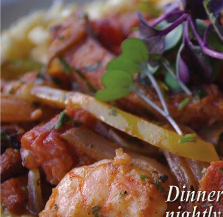 e IOP Shrimp and Grits is one of the bestsellers. e iconic dish is blackened, local shrimp with smoked sausage, tomatoes, and onions over tru e cheese grits. “It’s one of my favorites,” admits Arena, who recommends pairing the spicy dish with a Westbrook White ai, a Belgian-style beer brewed locally.