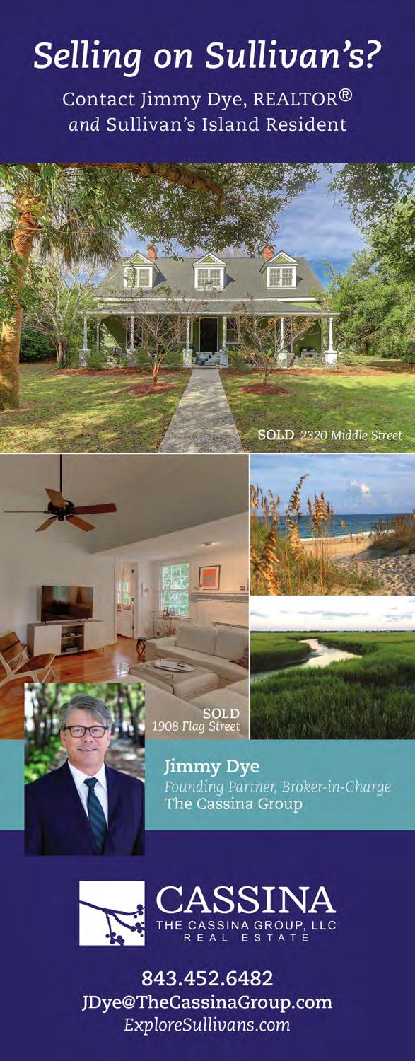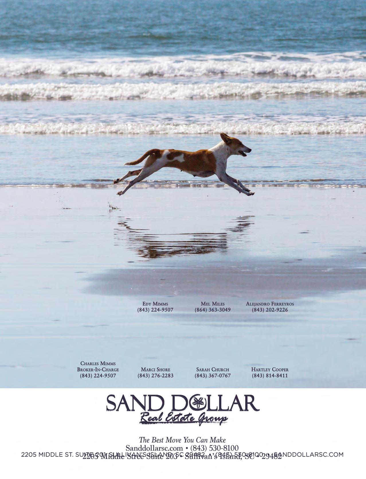 SiP magazine is published annually by Lucky Dog Publishing, LLC., 2205 Middle St., Sullivan’s Island, SC. SiP is mailed to all property owners on Sullivan’s Island, Isle of Palms and Dewees Island, and distributed free at select locations.