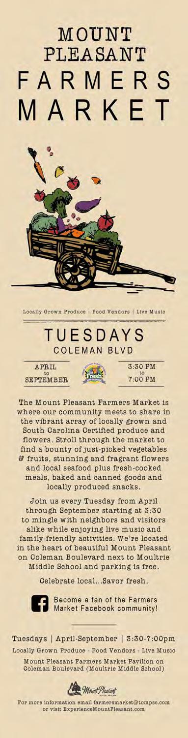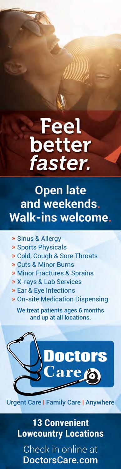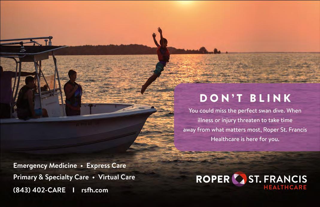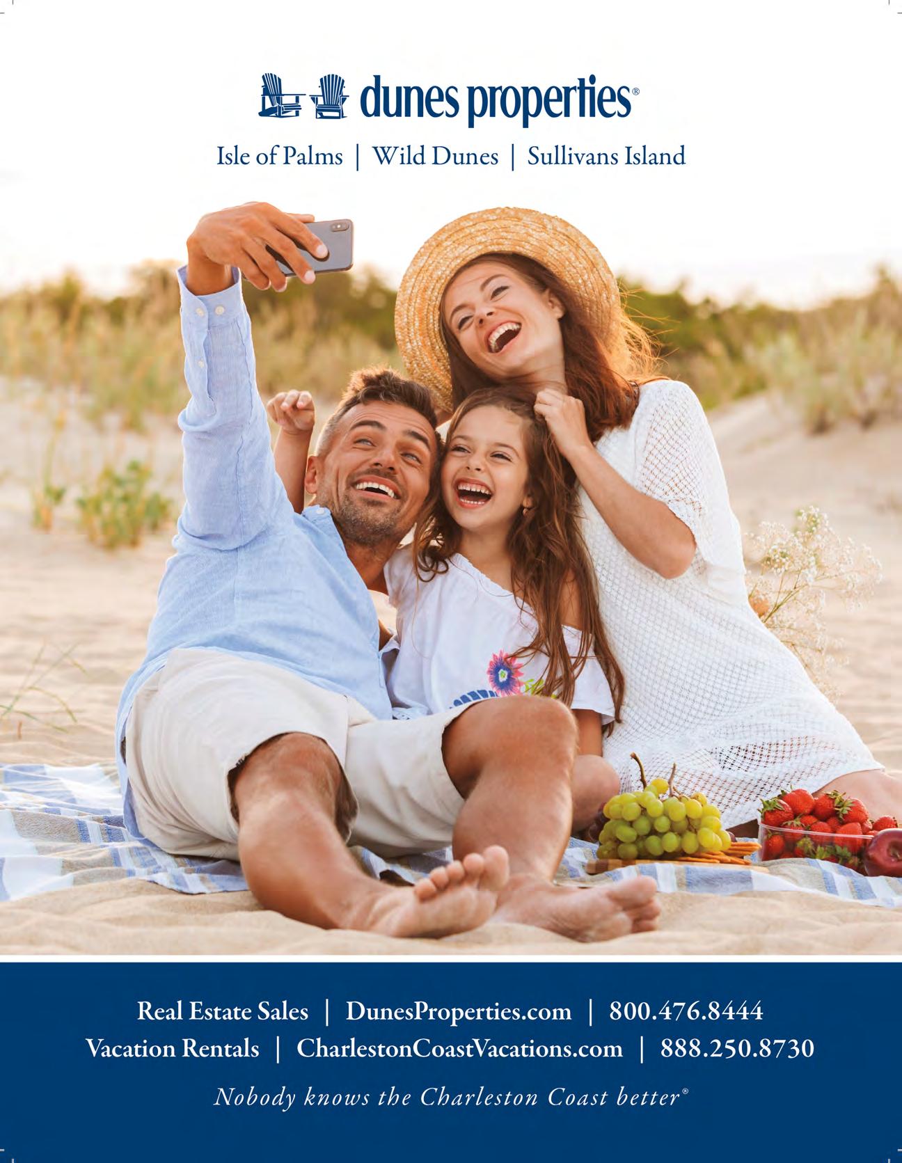 Then, meet the harbor heroes—the men who keep our shores safe from those imposing cargo ships that pass by every day. In Safe Passage (page 66), two Harbor Pilots with roots on the islands show us how they protect them day and night. Speaking of protecting, explore the fascinating history of the Isle of Palms Exchange Club in Community in Action (page 74). For 72 years this small chapter of a national organization has helped IOP mature into the wonderful community it is today.