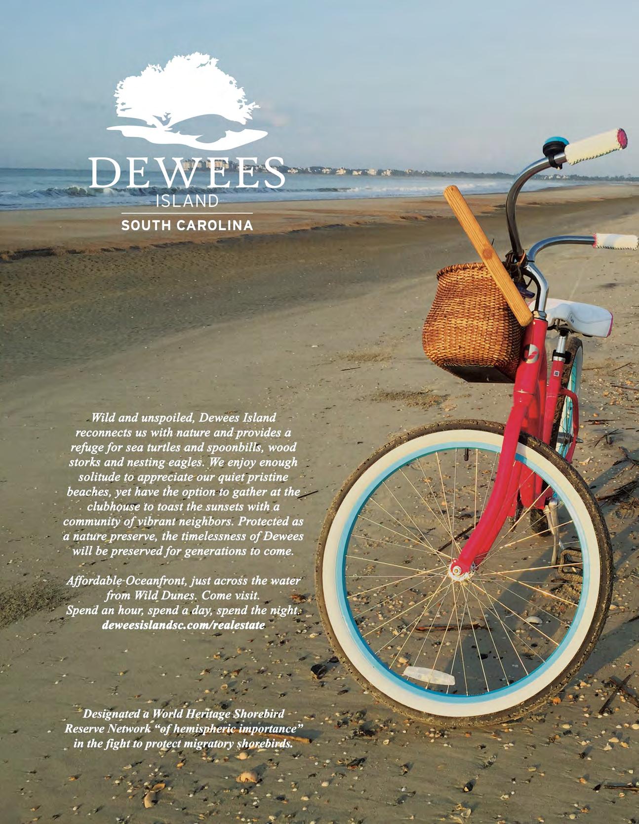Within the following pages dive into the lifelong passion of Sarah Diaz, as she studies and documents migratory birds on Sullivan’s Island in The Banders Are Back (page 16). Join the Island Turtle Team in its quest to continue the huge strides that have been made in saving our sea turtles in Just Keep Swimming (page 20), and learn the true story behind how Sullivan’s stations got their name in Riding the Rails (page 30).