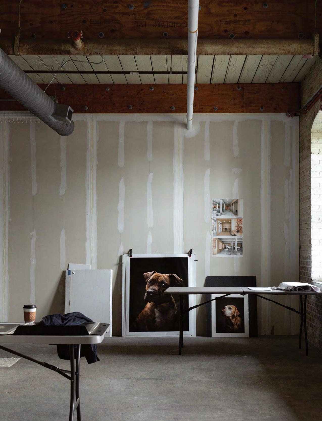 Both Darrell and Michelle work from home so they initially created a small joint workspace off the kitchen. But as Michelle’s art business grew, so did the need for additional space to paint. Michelle started out just painting for fun in the nook upstairs, but as the size of her art and the demand for it increased, she moved to the dining room to paint. Eventually, when she’d outgrown the dining room, the couple decided to convert the littleused guest living space into a full-fledged art studio.
