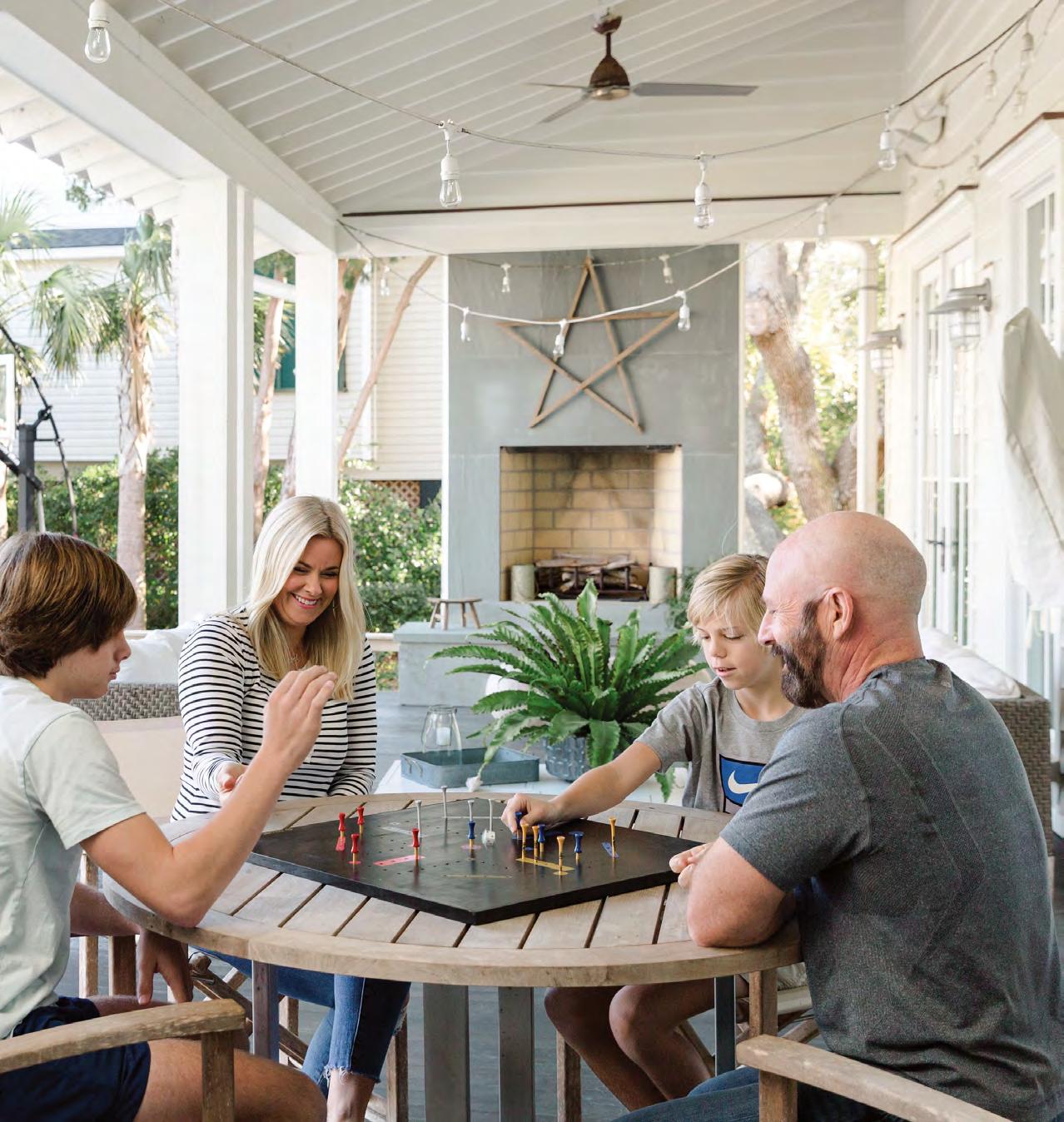 “Sullivan’s Island makes you appreciate the simple things in life and reminds you to spend time with the people that matter most,” says Michelle. As a family, they enjoy nightly golf cart or bike rides up to Home Team for supper or combing the beach for shark teeth during low tide beach walks. “My biggest take away from all our experience building houses is at the end of the day, it is just wood,” says Owenby. “Don’t get me wrong, we are so grateful and know how blessed we are with our home. But the structure itself is not what makes a home, it is the people inside.”