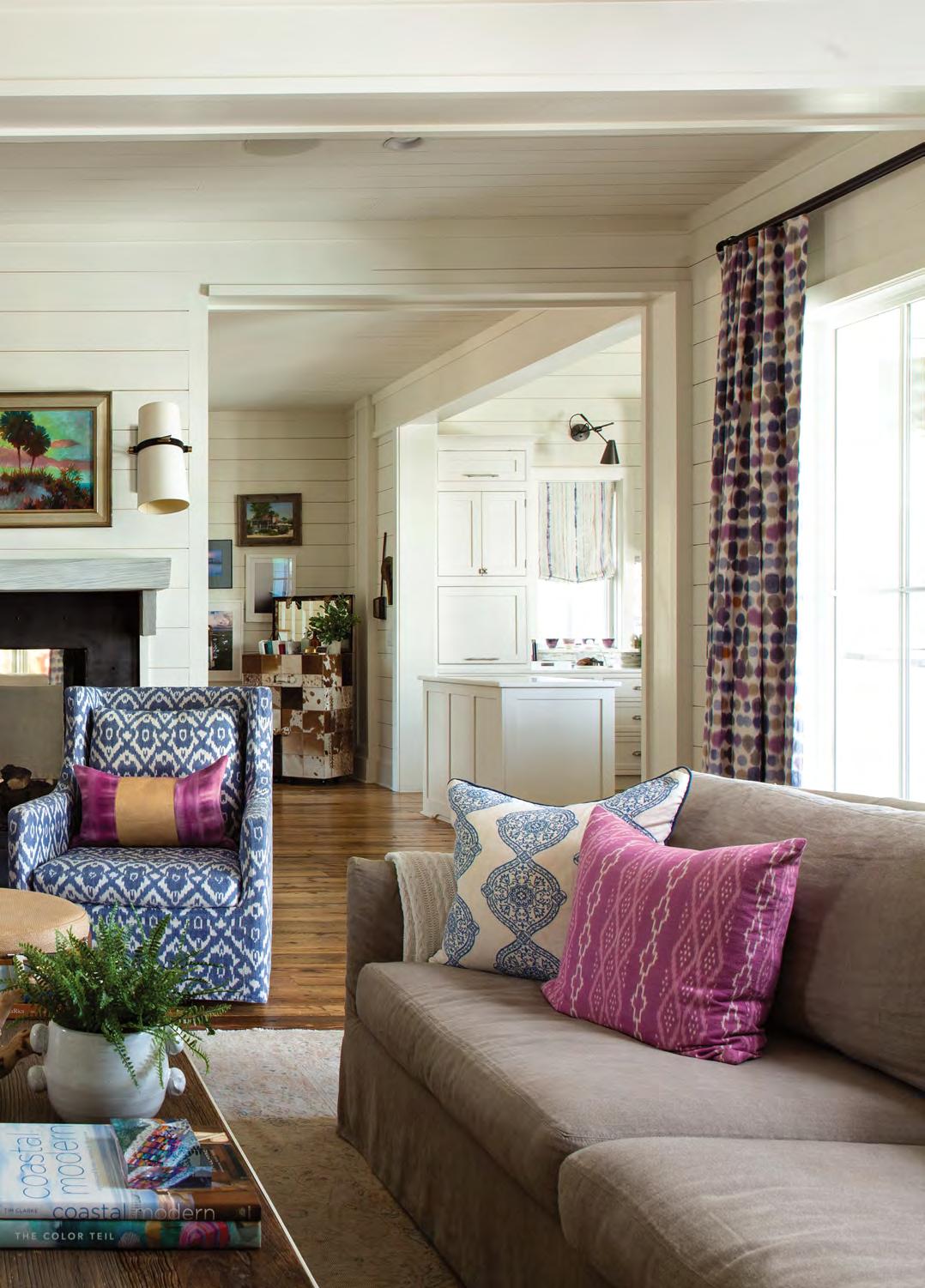 For the interior palette, Michelle wanted the house to feel soothing and calming, so she chose all of her favorite colors: rich blues, purples, indigos, and lilacs—hues well-represented in her artwork.