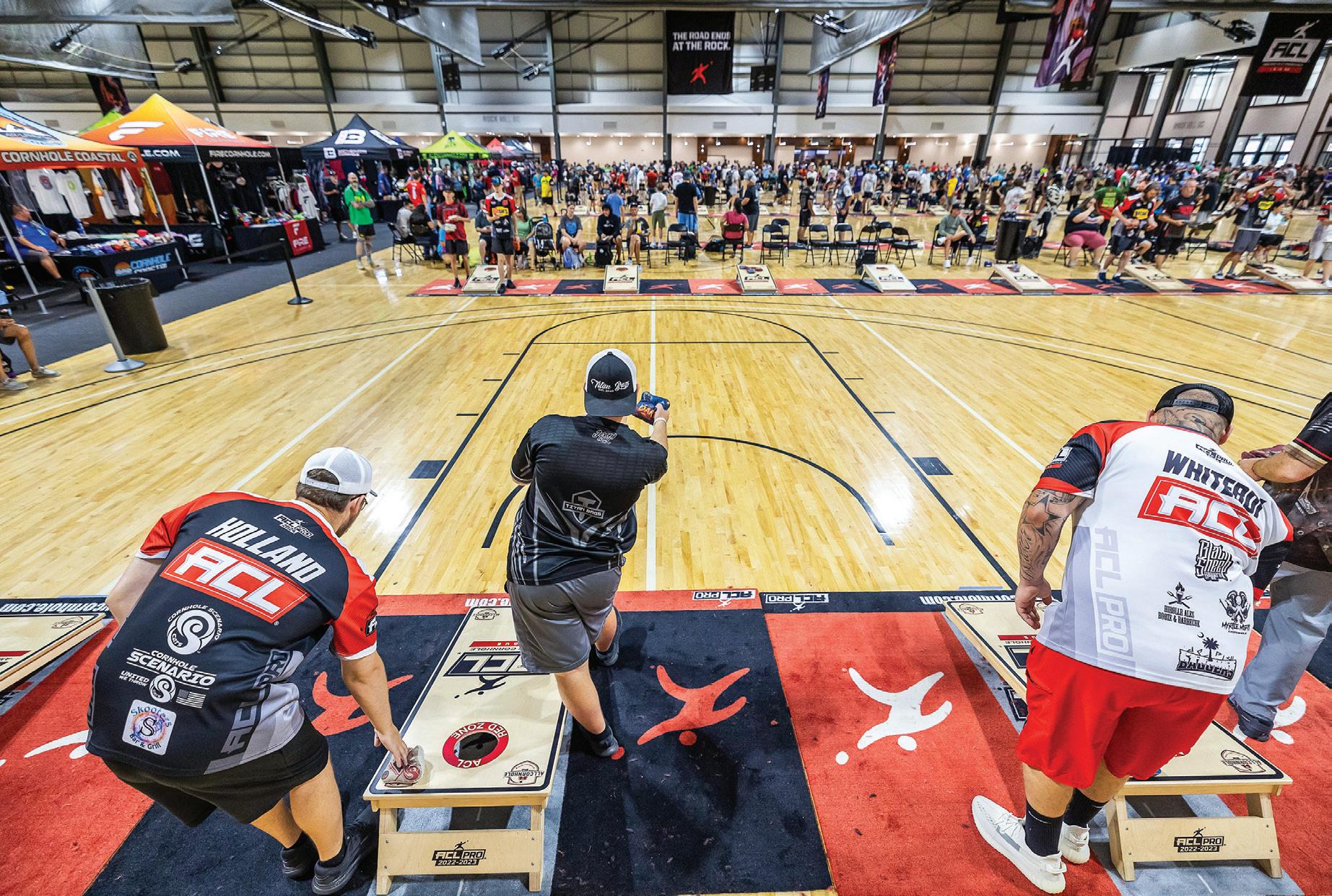 PROFESSIONAL CORNHOLERS SPORT JERSEYS with their names on the back and their sponsors on the front, just like NASCAR racers. Many matches air on ESPN+ or CBS or are livestreamed on YouTube, where commentators call out foot faults and shot selection, like a tennis match. Like golfers, cornholers wince at near misses and fist pump at holes-in-one.