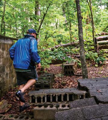 MAKING AN IMPRESSION The name of the person who formed this brick may be lost to time, but their finger imprints remain on the wall of Brick Baptist Church.