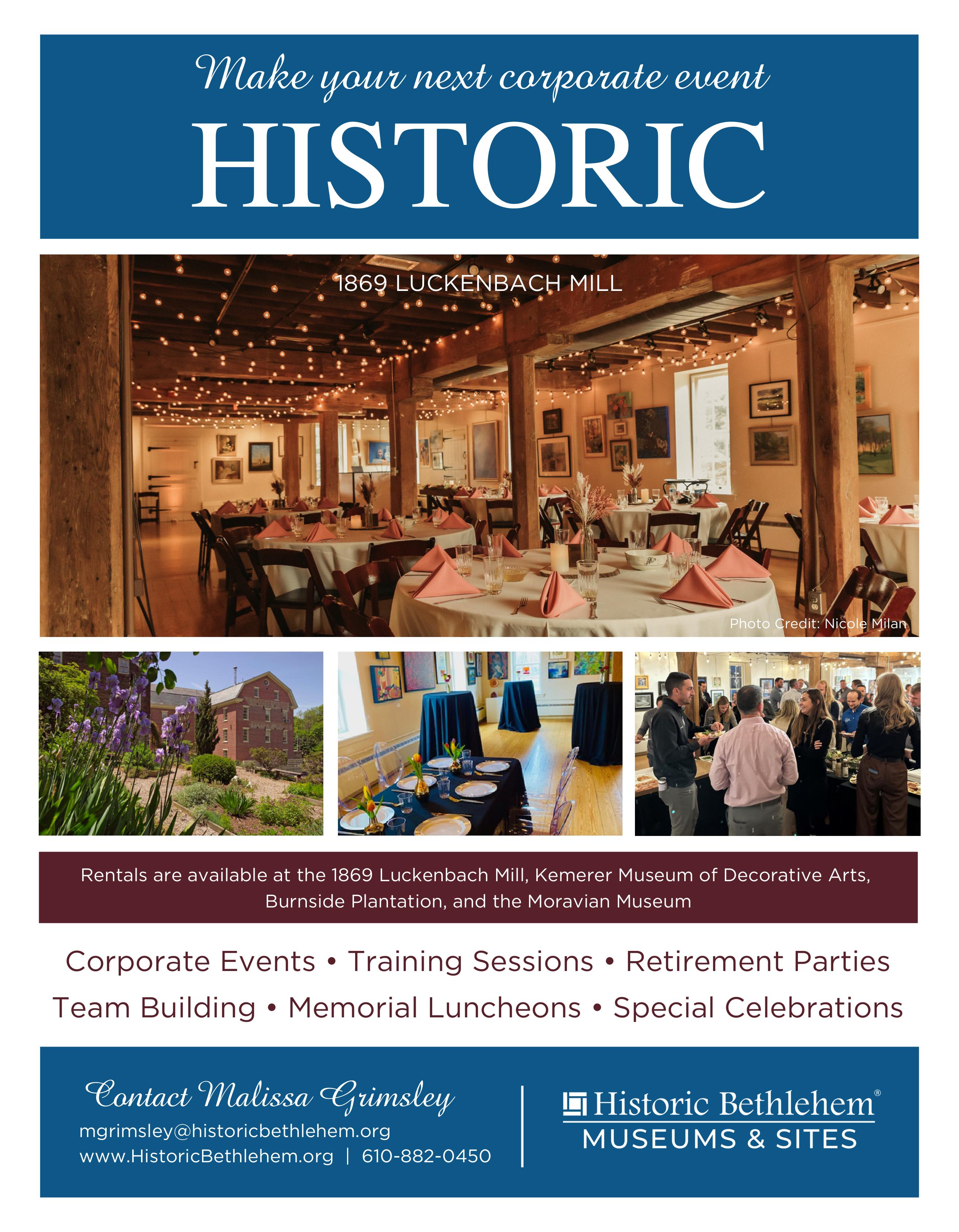 For more details, visit https://www.historicbethlehem.org and follow Historic Bethlehem Museums & Sites on Facebook, X, Instagram and LinkedIn.