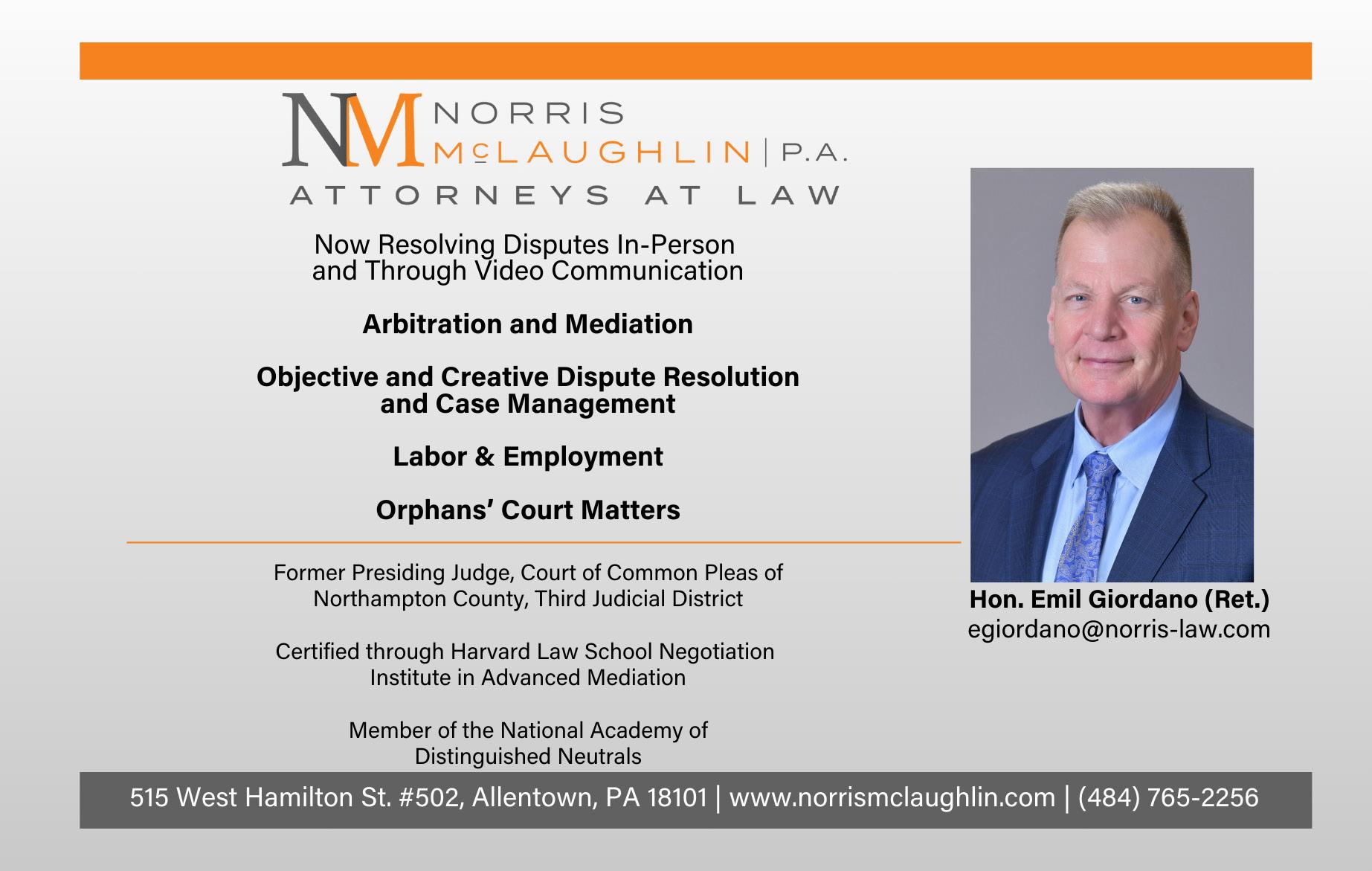 HON. EMIL GIORDANO (RET), NORRIS MCLAUGHLIN ATTORNEYS AT LAW
