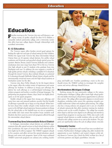 amilies moving to the Traverse City area will discover a satisfying variety of quality schools for their K–12 children, a nationally ranked community college, and a University Center that offers four-year college degrees through relationships with accredited universities.