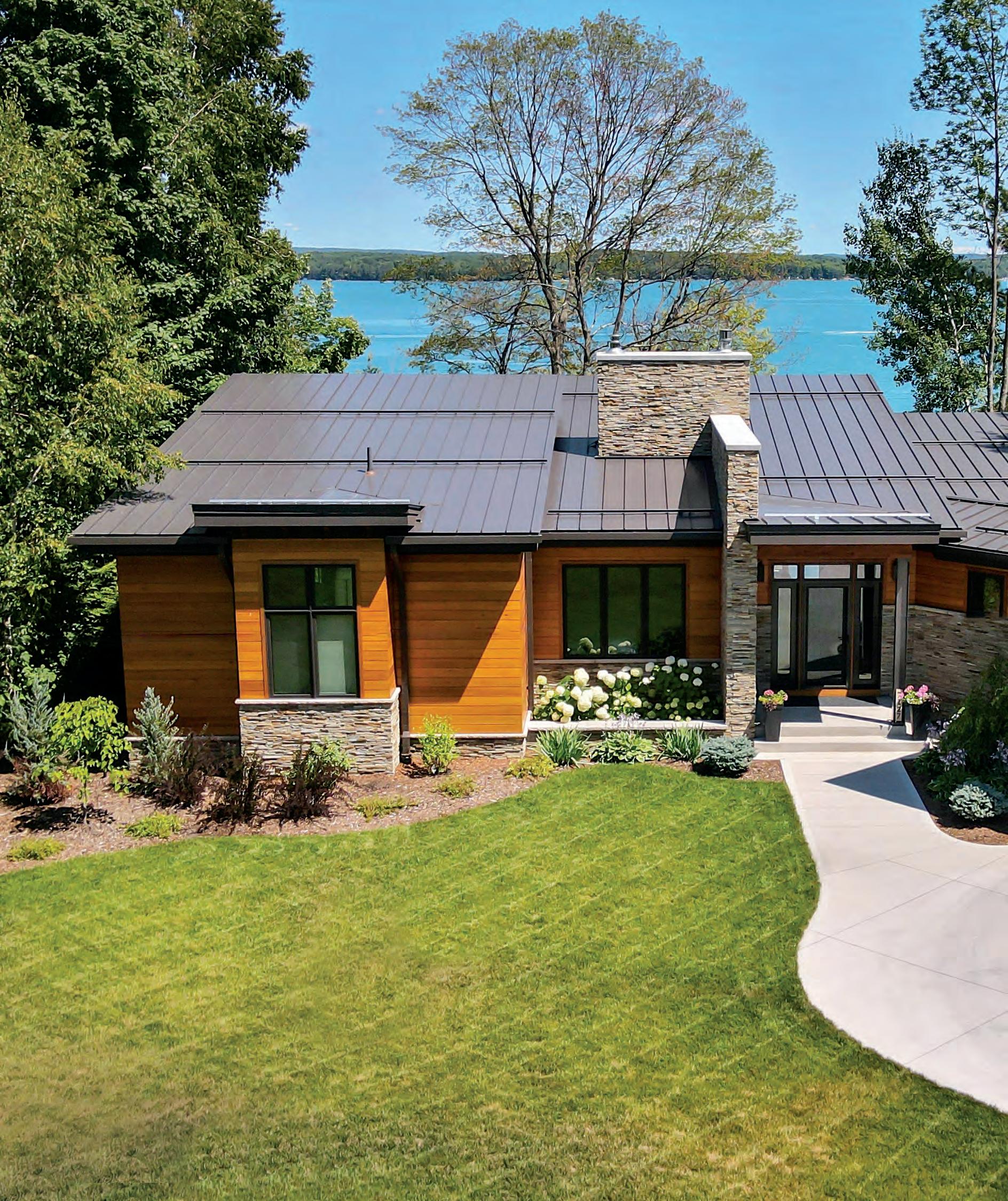 Still, the site itself was unbeatable: 100 feet of sparkling frontage, mature trees and the kind of aqua-blue panorama Torch Lake is famous for. The homeowners, a couple with college-aged daughters, had used the cottage for several years as a summer retreat, and they dreamed of creating a year-round homeâsomething warm, modern and connected to the water. âStylistically, they wanted a modern house, but rich in materials to fit in with the lake,â Mosey says.