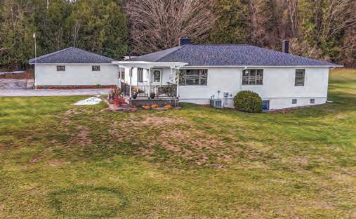 Previous spread: The monoslope metal roof adds a modern vibeâand sheds snow quickly during winter. On the front porch, the vertical steel I-beam was repurposed from the original cottage.